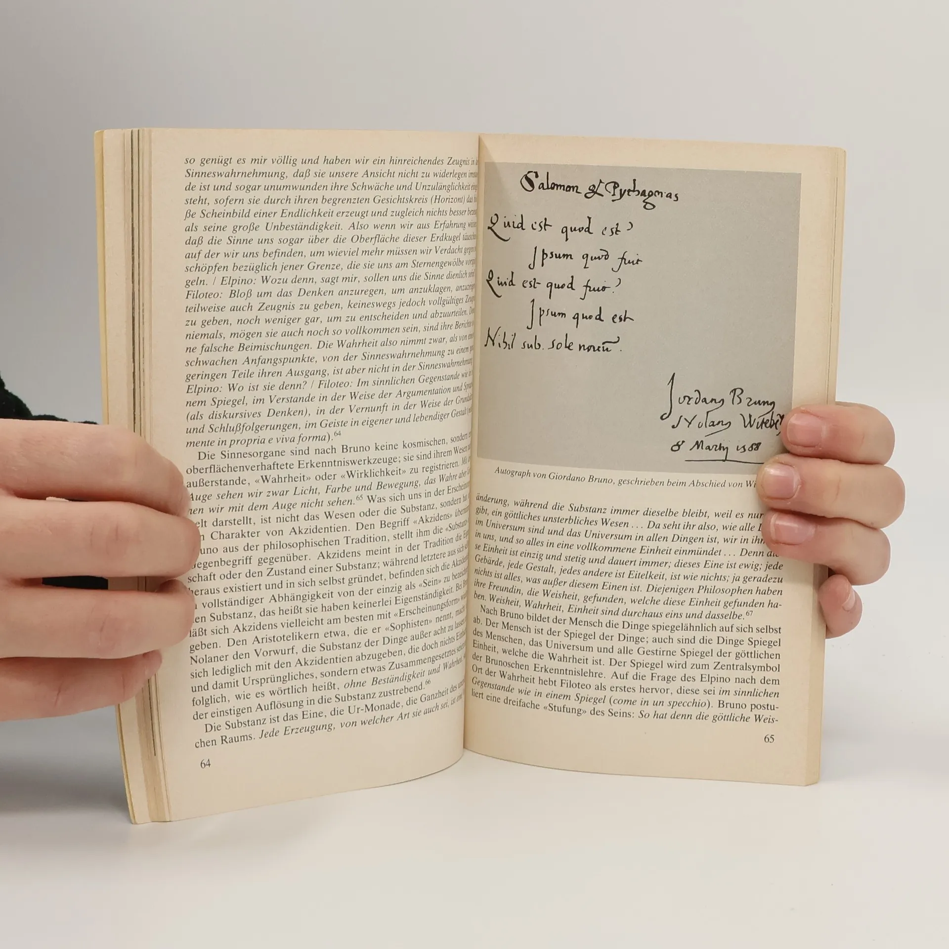 Um Giordano Bruno (1548-1600) zu verstehen, erscheint es sinnvoll, seinen naturphilosophischen Ansatz demjenigen Galileis gegenüberzustellen. Beide, Bruno und Galilei, entwickeln die eigene Naturphilosophie gegen die zu ihrer Zeit herrschende aristotelisch-scholastische Lehrmeinung. Bruno formulierte aber eine Fülle von naturwissenschaftlichen Erkenntnissen, ohne jemals ein Experiment durchgeführt oder ein Instrument benutzt zu haben: er erkannte die Fixsterne als Sonnen, entdeckte die polare Abplattung der Erde und vermutete weitere Planeten hinter dem Saturn. Der Ketzerei für schuldig befunden, wurde er schließlich öffentlich verbrannt.