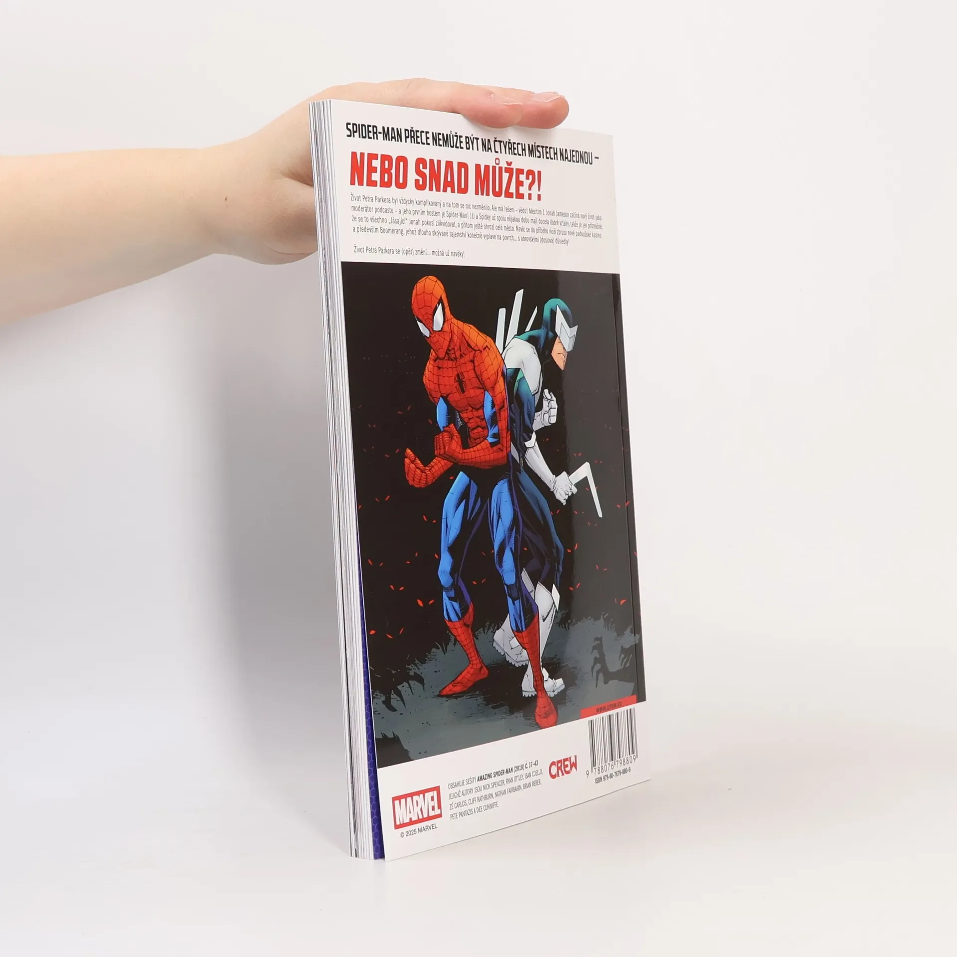 Život Petra Parkera byl vždycky komplikovaný a na tom se nic nezměnilo. Ale má řešení – vědu! Mezitím J. Jonah Jameson začíná nový život jako moderátor podcastu – a jeho prvním hostem je Spider-Man! JJJ a Spidey už spolu nějakou dobu mají docela dobré vztahy, takže je jen příznačné, že se to všechno „Jásající“ Jonah pokouší zlikvidovat, a přitom ještě ohrozí celé město. Navíc se do příběhu vloží zbrusu nové padoušské kasino a především Boomerang, jehož dlouho skrývané tajemství konečně vyplave napovrch… s obrovskými (doslova) důsledky! Život Petra Parkera se (opět) změní... možná už navěky! OBSAHUJE SEŠITY AMAZING SPIDER-MAN (2018) C. 37–43 JEJICHŽ AUTORY JSOU NICK SPENCER, RYAN OTTLEY, IBAN COELLO, ZÉ CARLOS, CLIFF RATHBURN, NATHAN FAIRBAIRN, BRIAN REBER, PETE PANTAZIS A DEE CUNNIFEE.