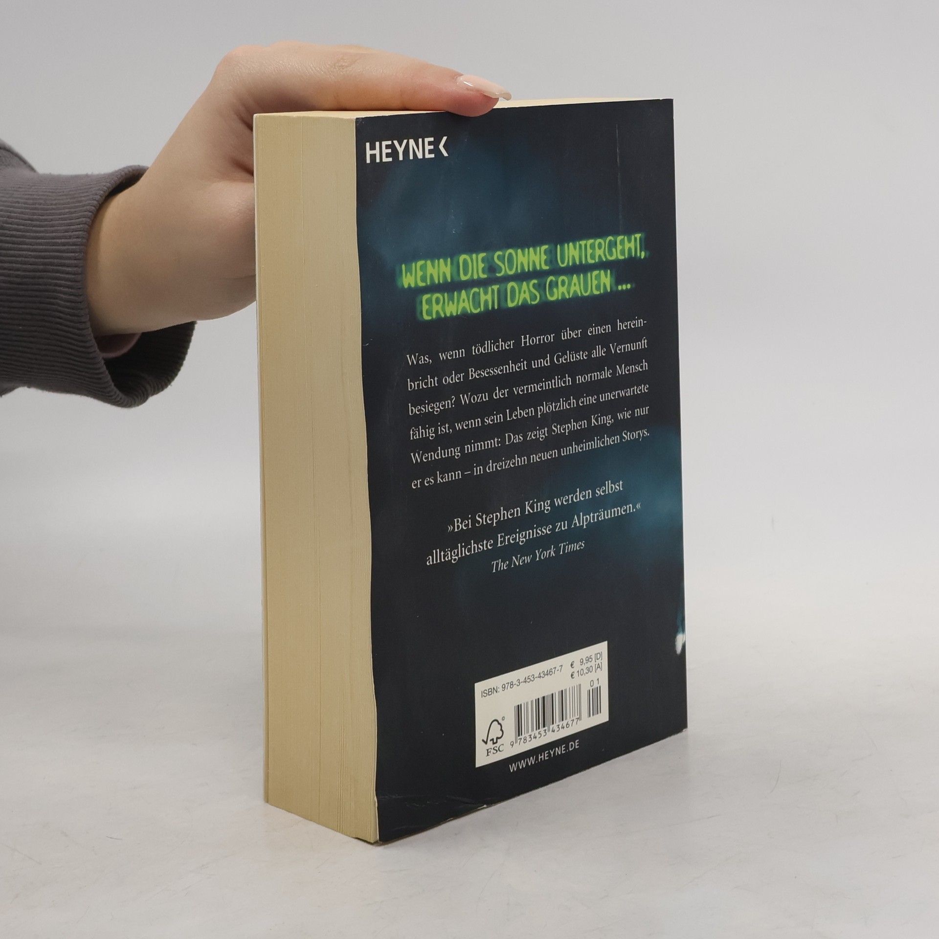 Wenn die Sonne untergeht, erwacht das Grauen ...§§Was, wenn tödlicher Horror über einen hereinbricht oder Besessenheit und Gelüste alle Vernunft besiegen? Wozu der vermeintlich normale Mensch fähig ist, wenn sein Leben plötzlich eine unerwartete Wendung nimmt: Stephen King zeigt uns das, wie nur er es kann - in dreizehn neuen unheimlichen Geschichten, erstmals in einem Band gesammelt.§§