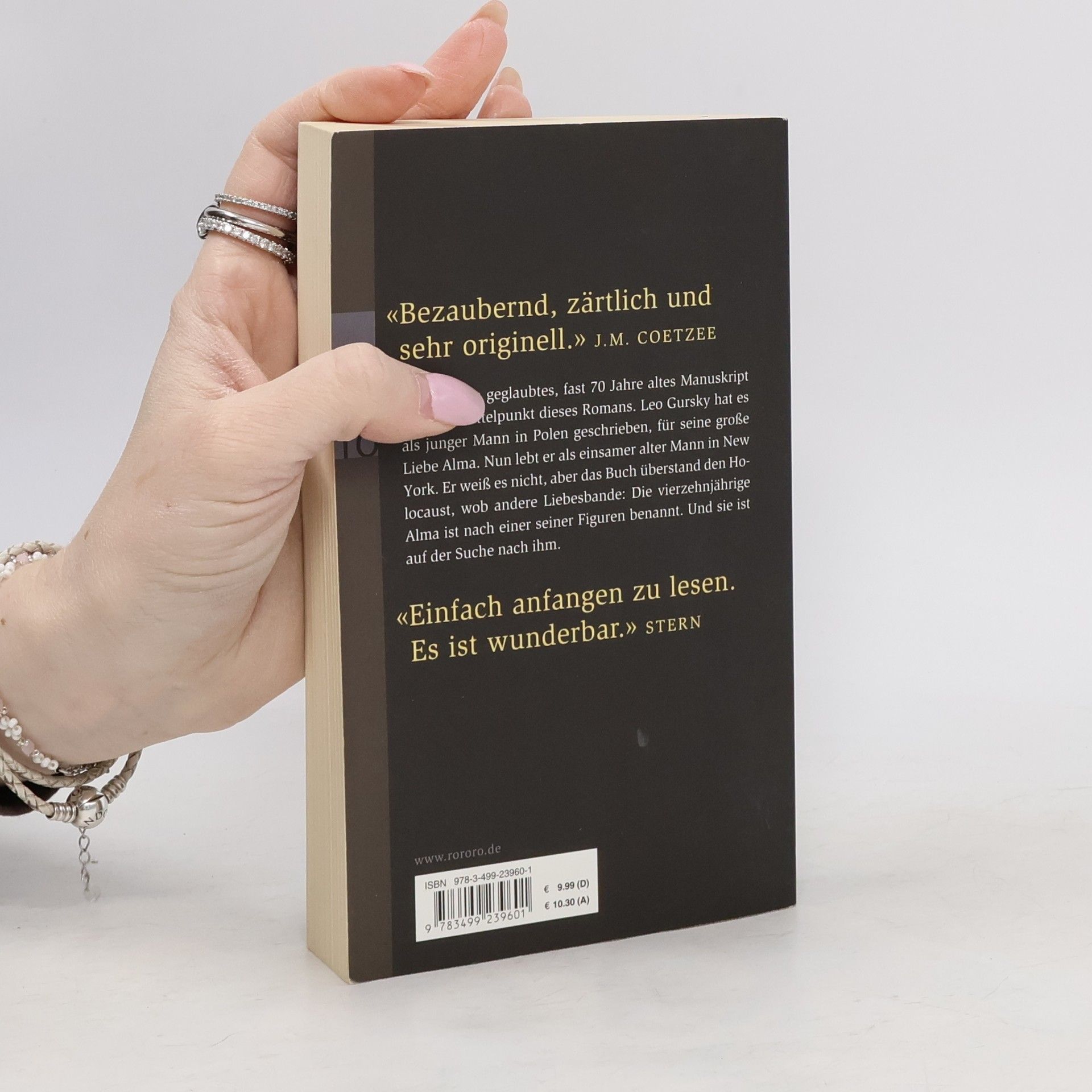 „Bezaubernd, zärtlich und sehr originell.“ (J. M. Coetzee)Ein verloren geglaubtes, fast 70 Jahre altes Manuskript steht im Mittelpunkt dieses Romans. Leo Gursky hat es als junger Mann in Polen geschrieben, für seine große Liebe Alma. Nun lebt er als einsamer alter Mann in New York. Er weiß es nicht, aber das Buch überstand den Holocaust, wob andere Liebesbande: die 14-jährige Alma ist nach einer seiner Figuren benannt. Und sie ist auf der Suche nach ihm.„Einfach anfangen zu lesen. Es ist wunderbar.“ (Stern)