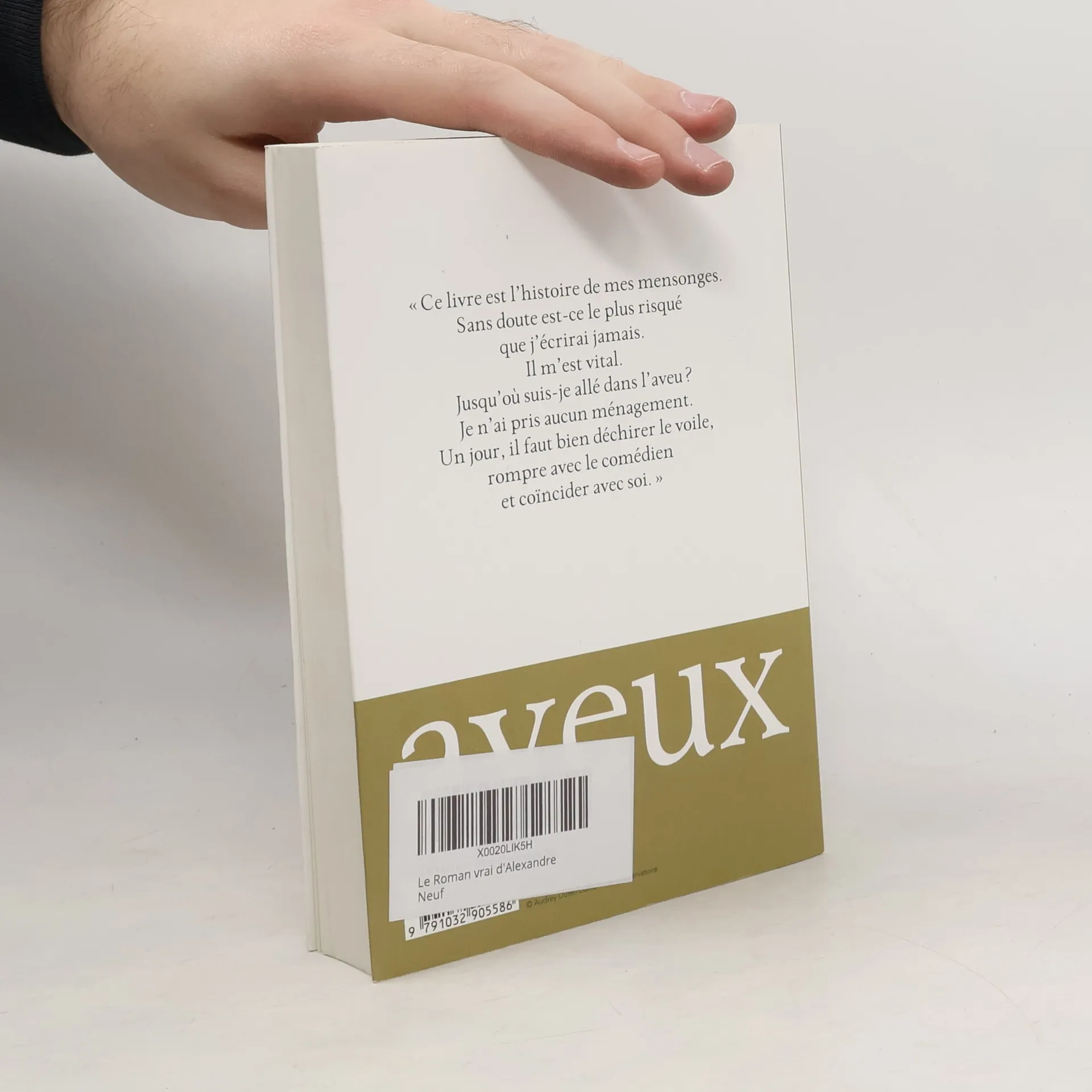 "Ce livre est l’histoire de mes mensonges.Sans doute est-ce le plus risqué que j’écrirai jamais. Il m’est vital.Jusqu'où suis-je allé dans l’aveu ? Je n’ai pris aucun ménagement. Un jour, il faut bien déchirer le voile, rompre avec le comédien et coïncider avec soi."