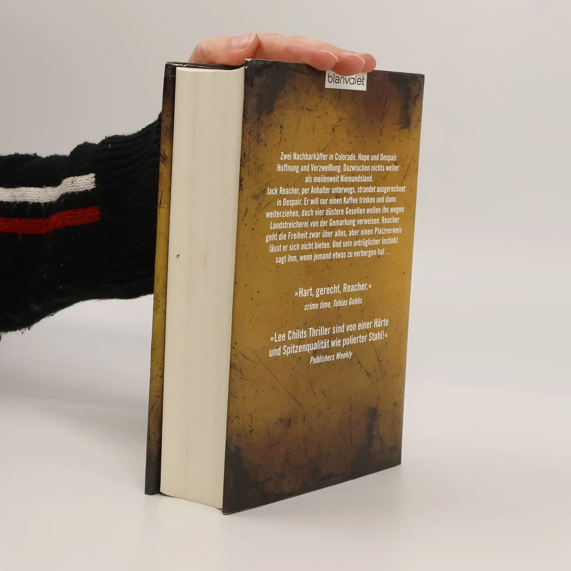 Zwei gottverlassene Dörfer in Colorado. Hope und Despair. Hoffnung und Verzweiflung. Dazwischen nichts weiter als meilenweit Niemandsland. Jack Reacher, per Anhalter unterwegs, strandet ausgerechnet in Despair. Er will nur einen Kaffee trinken und dann weiterziehen, doch vier düstere Gesellen wollen ihn wegen Landstreicherei von der Gemarkung verweisen. Reacher geht die Freiheit zwar über alles, aber einen Platzverweis lässt er sich nicht bieten. Und sein untrüglicher Instinkt sagt ihm, wenn jemand etwas zu verbergen hat …