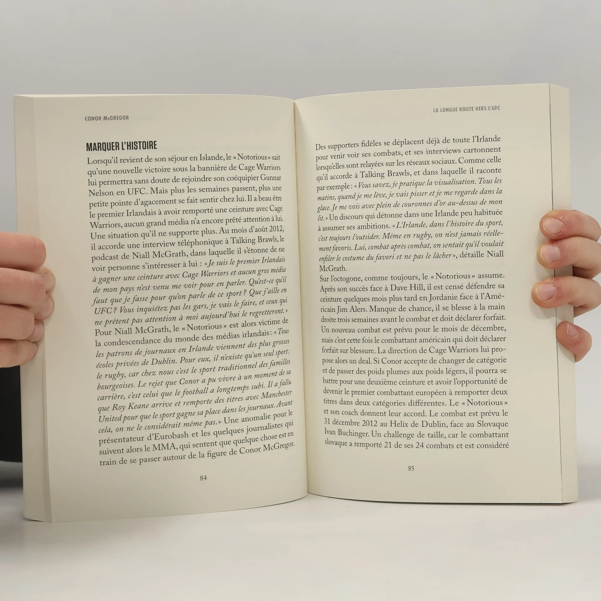 Connu pour son trash talking, son talent pour la provocation, ses frasques spectaculaires et sa personnalité atypique, Conor McGregor fascine bien au-delà du monde du sport. Arrivé en 2013 en UFC, l'organisation la plus prestigieuse de l'univers du MMA, il ne lui a fallu que trois ans pour devenir le premier combattant à détenir simultanément deux ceintures UFC dans deux catégories différentes. En 2017, le « Notorious » change encore de dimension en osant défier Floyd Mayweather sur un ring de boxe, dans un duel resté célèbre sous le surnom de « combat du siècle ». Aujourd'hui à la tête de sa propre entreprise de whiskey, il tente ce qui est peut-être son pari le plus audacieux : redevenir le roi de l'octogone. À travers des témoignages exclusifs recueillis à Dublin, dans le quartier de son enfance, auprès de ses premières connaissances et de ses premiers adversaires, ce livre tente de comprendre comment Conor McGregor est devenu en quelques années l'Irlandais le plus célèbre de la planète et le visage le plus emblématique des sports de combat.