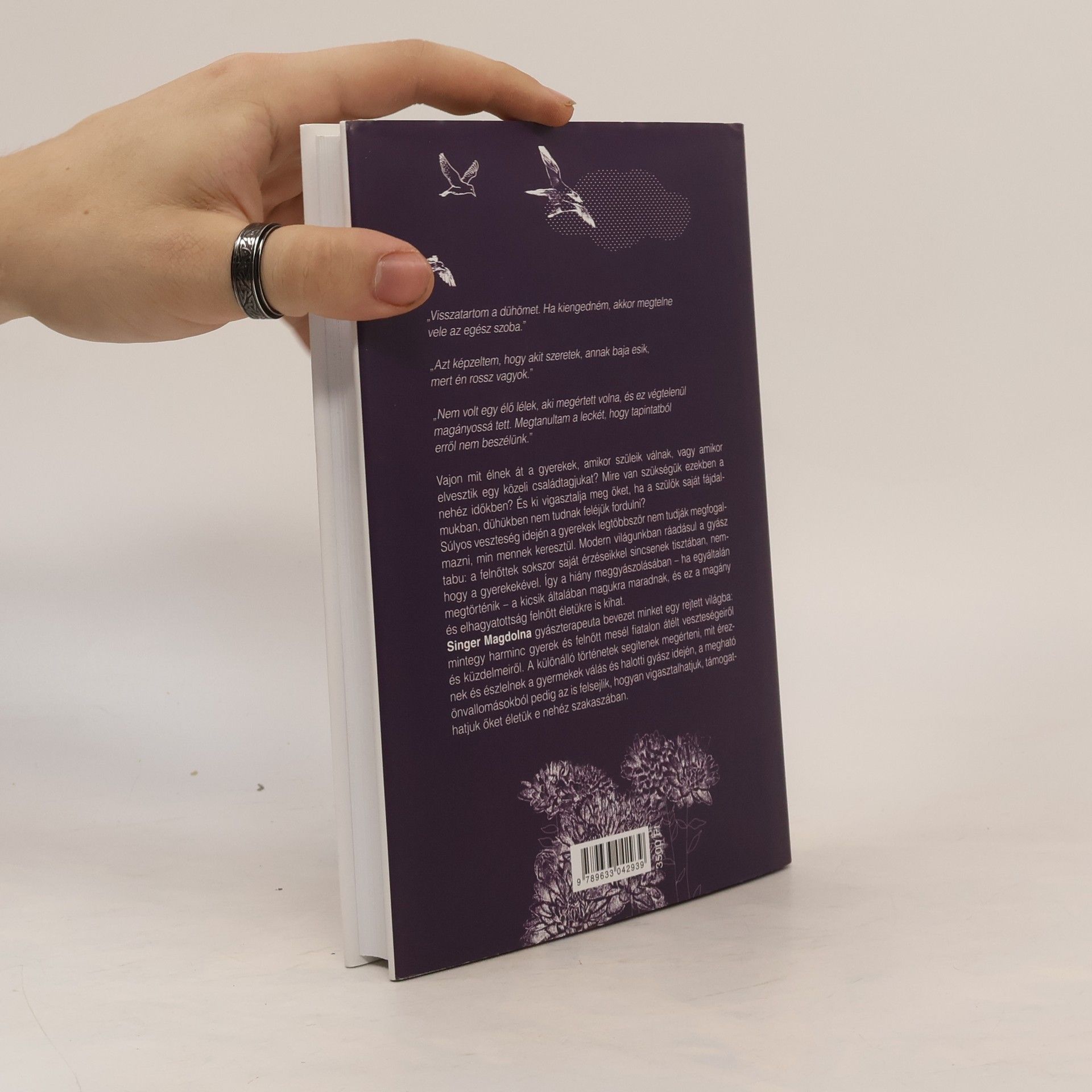Vajon mit élnek át a gyerekek, mikor válnak a szüleik, vagy amikor elveszítik valamelyik közeli hozzátartozójukat? Mire van szüksége egy gyereknek ilyen helyzetekben? És mi van akkor, ha a szülők nem tudnak segíteni, mert őket is a fájdalmuk vagy a dühük foglalja le? Ezen kérdések megválaszolásában igyekszik segíteni a szülőket könyvével Singer Magdolna író, újságíró, gyásztanácsadó. A két részre (válás; haláleset) osztott kötetben összesen harminc gyermek és felnőtt mesél fiatalon átélt veszteségeiről és küzdelmeiről. Mindkét részt egy általános bevezető nyitja. A válás esetén olyan tényezőket igyekezett összegyűjteni a szerző, hogy mi befolyásolja a válási gyász mélységét (a gyermek életkora; lélektani feladatai; a bejelentés módja; új környezete stb.), és a gyermeki gyász esetében is ugyanezen tényezőket összegzi (szembesülés a halállal, temetés, halotti tor, az érzelmek zűrzavara, elhallgatás a családban, a szülő új párja stb.). A rendkívül tanulságos, bensőséges hangulatú interjúk után jegyzetek és irodalomjegyzék zárja a kötetet. "www.kello.hu © minden jog fenntartva"