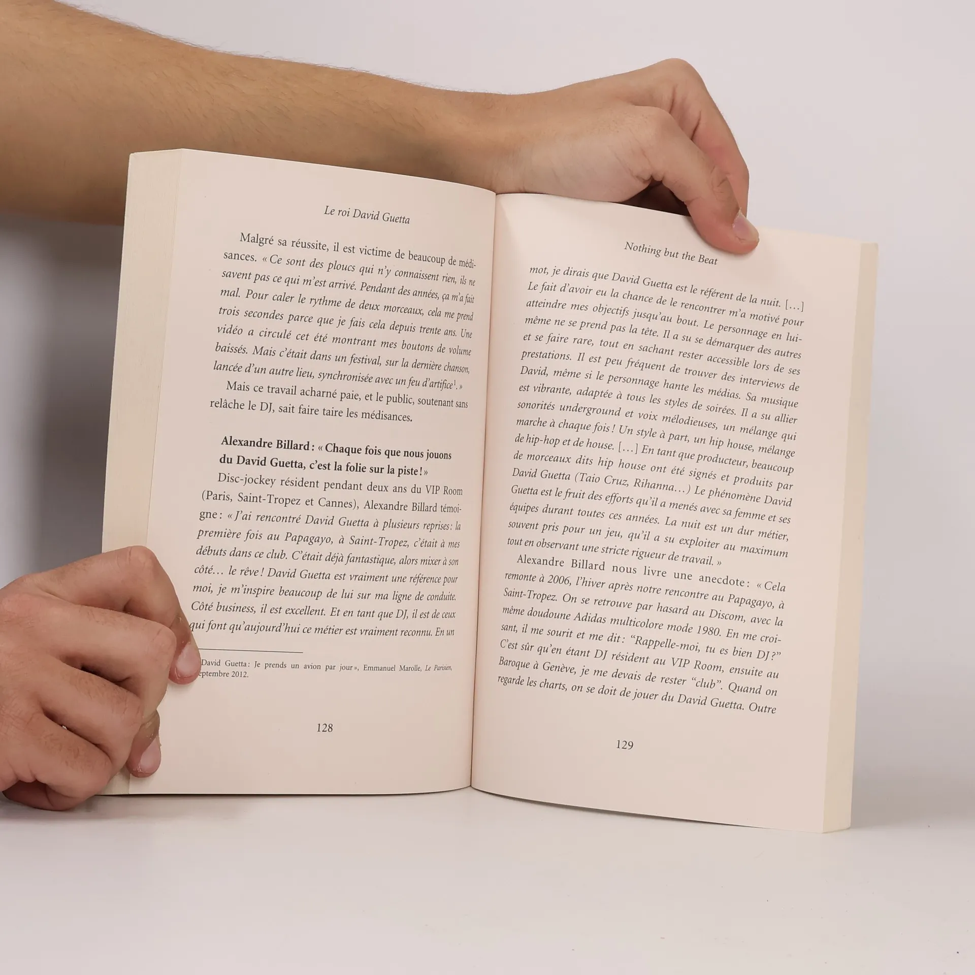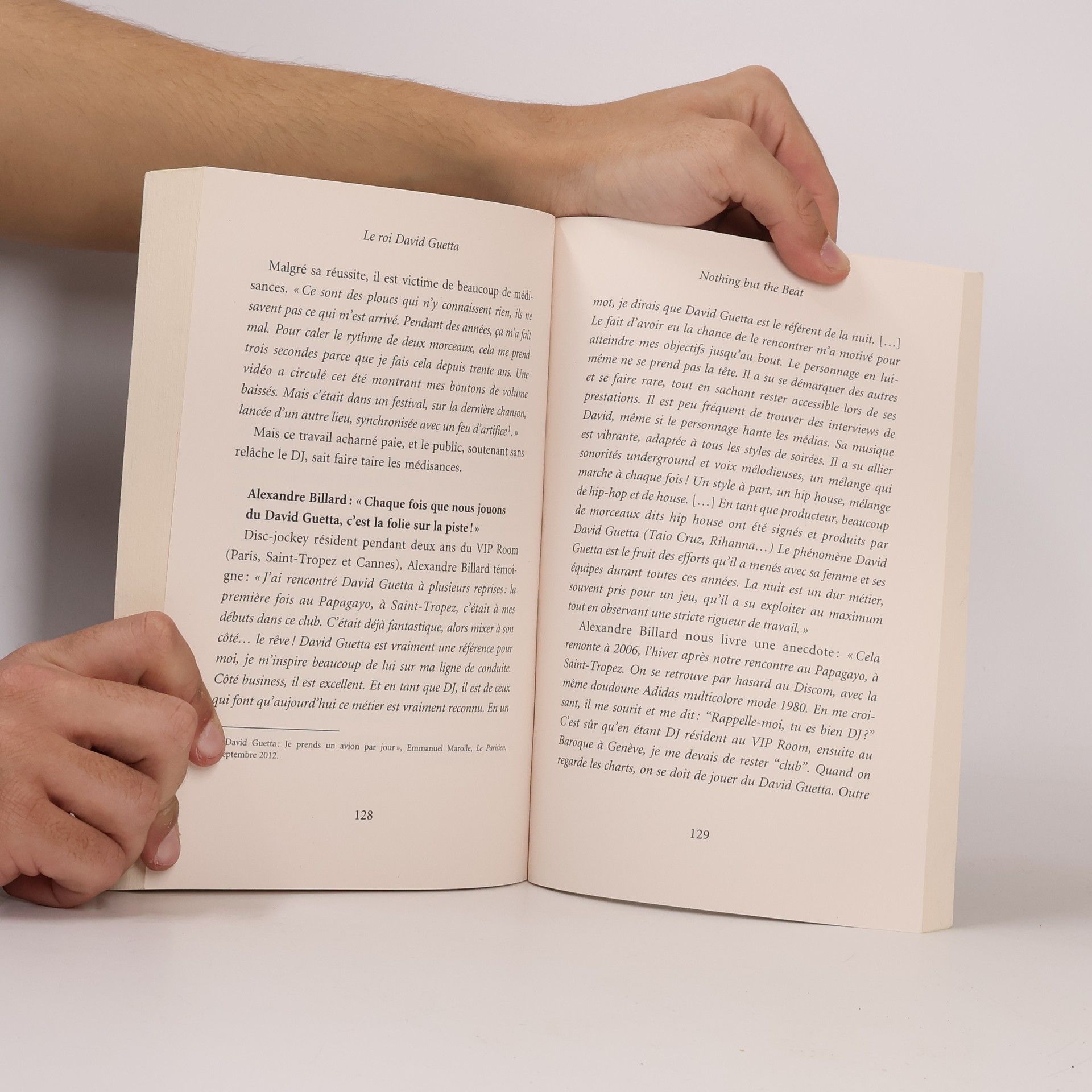 Avec 10 millions d'albums et 35 millions de singles vendus, David Guetta est un véritable phénomène mondial, souvent décrit comme un tsunami planétaire. Le "roi David" est l'artiste français le plus écouté au monde, avec 55 millions de fans sur Facebook. Bien que ses mixes endiablés aient fait danser des millions de personnes, l'homme derrière le succès demeure peu connu. Ce livre explore ses origines, sa famille, son enfance et les diverses facettes de sa vie et de sa carrière. Il est enrichi de témoignages inédits d'une trentaine de musiciens, producteurs et DJs qui l'ont accompagné pendant trois décennies. Ces récits évoquent le jeune David, timide et fasciné par Jean-Louis Aubert, ainsi que ses débuts difficiles dans une petite boîte de nuit où le DJ était souvent caché. On découvre l'émergence d'un génie aux talents multiples, directeur artistique des lieux emblématiques des années 1990, organisateur de nuits folles à Ibiza et musicien reconnu internationalement. Malgré sa célébrité, il reste un homme simple, amoureux de Cathy, la mère de ses enfants, qui a été sa muse et son soutien. La douleur de leur divorce, survenu il y a deux ans, a marqué une étape difficile dans sa vie. Une biographie captivante, à lire absolument pour les passionnés de musique, de dance et d'amour.