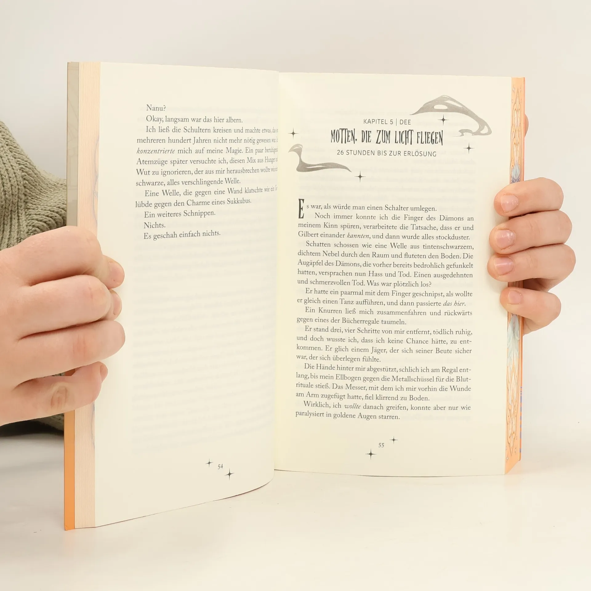 Ein verzauberter Buchladen, eine Hexe mit ... emotional instabiler Magie und ein Dämon, der ... versehentlich gebunden wurde Sei vorsichtig mit deinen Wünschen, sie könnten in Erfüllung gehen! Deandra „Dee“ Moth gilt dank ihrer magischen Instabilität als wandelnde Katastrophe. Kein Wunder also, dass eine Räumungsklage für ihren frisch übernommenen Buchladen in Ecco Falls eintrifft. Ihr bleiben genau vier Wochen, um zu beweisen, dass sie mehr kann, als Chaos verbreiten. Sie braucht also dringend einen Plan. Denn Dee hat die Nase voll davon, immer wieder zu versagen. Im Hexen-Netz stößt sie auf einen für Anfänger geeigneten Beschwörungszauber. Der Plan? Genial. Die Ausführung? Nun ja… Denn statt eines strahlenden Schutzgeists steht plötzlich der Tod persönlich vor ihr. Groß, düster – und überraschend charmant. Mit der Räumungsklage im Nacken und einem viel zu attraktiven Dämon an ihrer Seite muss Dee schlagartig zwei Probleme lösen: Wie wird sie diesen Dämon wieder los? Und wie rettet sie dabei ihren geliebten Laden? #SmalltownFantasyRomcom #GrumpyxSunshine #ForcedProximity #FoundFamil #WhoDidThisToYou #FakeDating Ausstattungsmerkmale: • Veredelte Klappenbroschur • Mit farbigen Illustrationen in Vor- und Nachsatz • Farbschnitt in der ersten Auflage Dieses Buch gibt es in zwei Varianten: Mit und ohne Farbschnitt. Leider können wir keinen Farbschnitt garantieren.