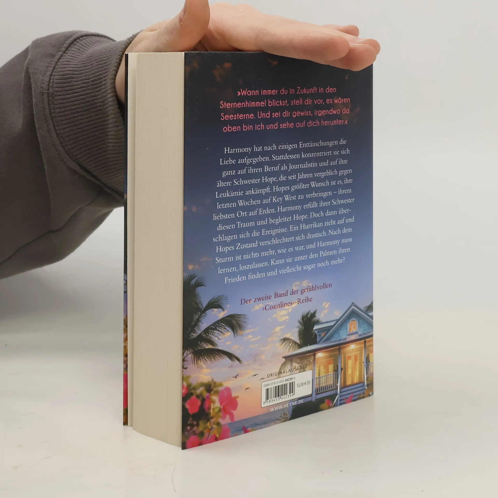 Auf Key West kämpft Harmony für ihre Schwester – und die Hoffnung Harmony lebt als Journalistin in Phoenix. Die Liebe hat sie nach einigen Enttäuschungen aufgegeben. Stattdessen konzentriert sie sich ganz auf ihren Beruf und auf ihre ältere Schwester Hope, die seit drei Jahren vergeblich gegen Leukämie ankämpft. Hopes größter Wunsch ist es, ihre letzten Wochen auf Key West zu verbringen – ihrem liebsten Ort auf Erden. Harmony begleitet Hope und erfüllt ihr einen Traum: noch einmal Delfine zu beobachten. Doch schon bald überschlagen sich die Ereignisse. Ein Hurrikan zieht auf und Hopes Zustand verschlechtert sich drastisch. Nach dem Sturm ist nichts mehr, wie es einmal war, und Harmony muss lernen, loszulassen. Kann sie unter den Palmen ihren Frieden finden und vielleicht sogar noch mehr?