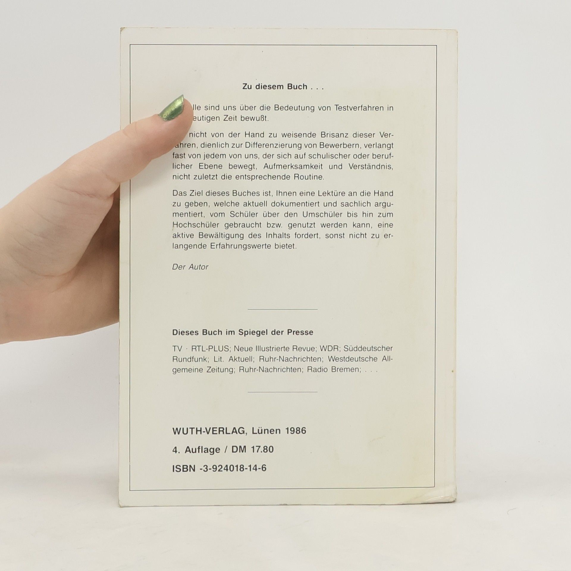 Tests, Tests, Tests, Armin W. Wuth