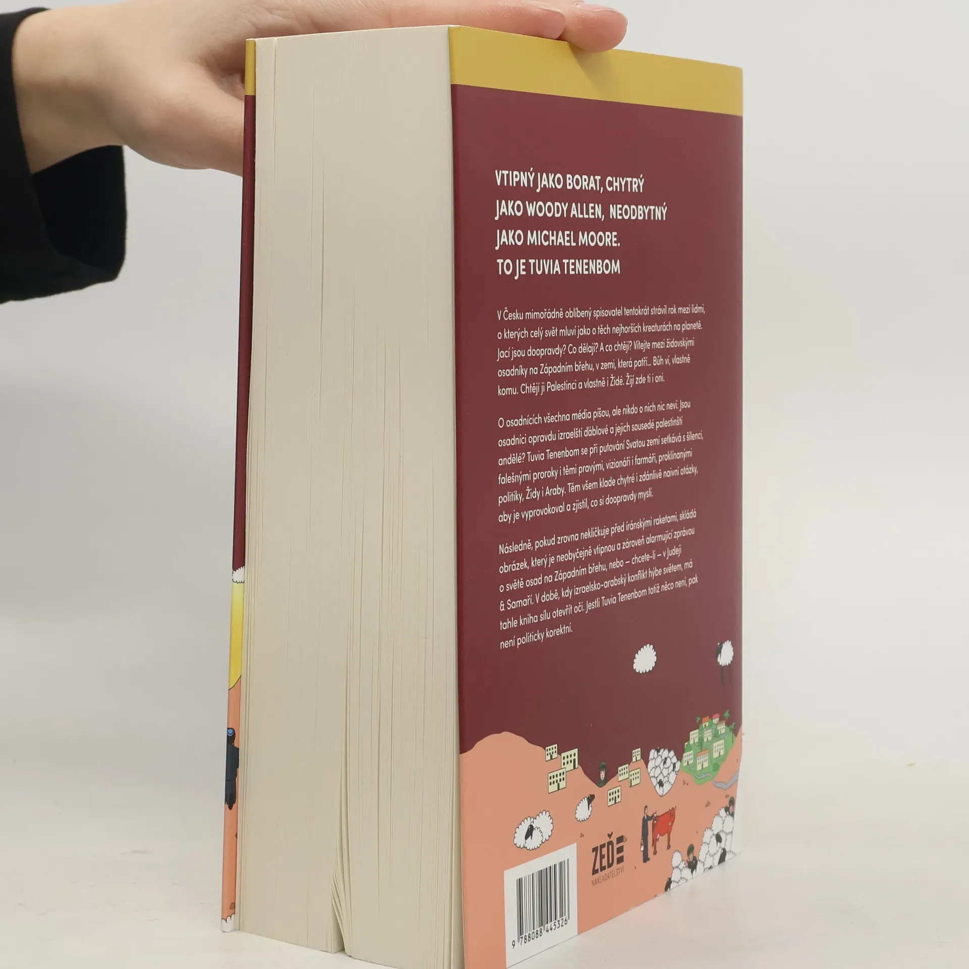 Nová kniha v Česku mimořádně oblíbeného spisovatele a rovnou ve světové premiéře. Tuvia Tenenbom dokáže odkrývat nešvary dnešního světa jako málokdo, trefně, tvrdě, ale s vtipem a nadhledem. Tentokrát strávil rok mezi lidmi, o kterých celý svět mluví jako o těch nejhorších kreaturách na planetě, kteří páchají to nejhorší zlo. Jací jsou doopravdy? Co dělají? A co chtějí? Vítejte mezi židovskými osadníky na Západním břehu, v zemi, která patří… Bůh ví, vlastně komu. Chtějí ji Palestinci a vlastně i Židé. Žijí zde ti i oni. O osadnících všechna média píšou, ale nikdo mezi nimi nestrávil takovou dobu jako Tenenbom. Jsou osadníci opravdu izraelští ďáblové a jejich sousedé palestinští andělé? Setkává se s šílenci, falešnými proroky i těmi pravými, vizionáři i farmáři, Židy i Araby. Těm všem klade chytré i zdánlivě naivní otázky, aby je vyprovokoval – což se mu často daří – a zjistil, co si doopravdy myslí. Následně, pokud zrovna nesleduje íránské rakety na obloze, skládá obrázek, ktery je neobyčejně vtipnou a zároveň alarmující zprávou o Izraeli a Palestině, o světě osad na Západním břehu, nebo – chcete-li – v Judeji & Samaří. V době, kdy izraelsko-arabský konflikt hýbe světem Tuvia Tenenbom přichází s knihou, která má sílu otevřít oči. Za vším jeho vtipem jsou totiž často překvapující i kruté pravdy. Jestli Tuvia Tenenbom totiž něco není, pak není politicky korektní.
