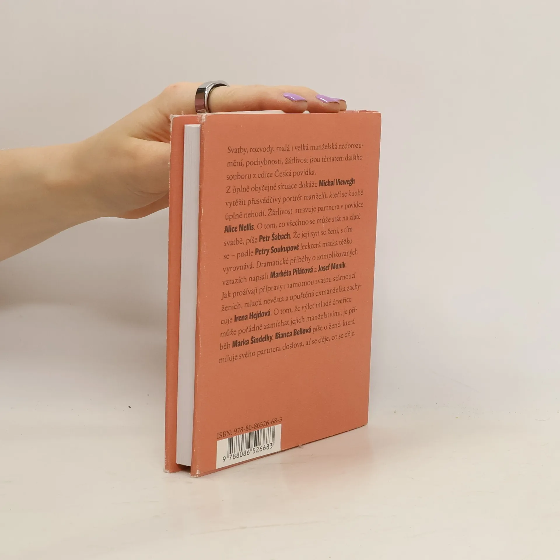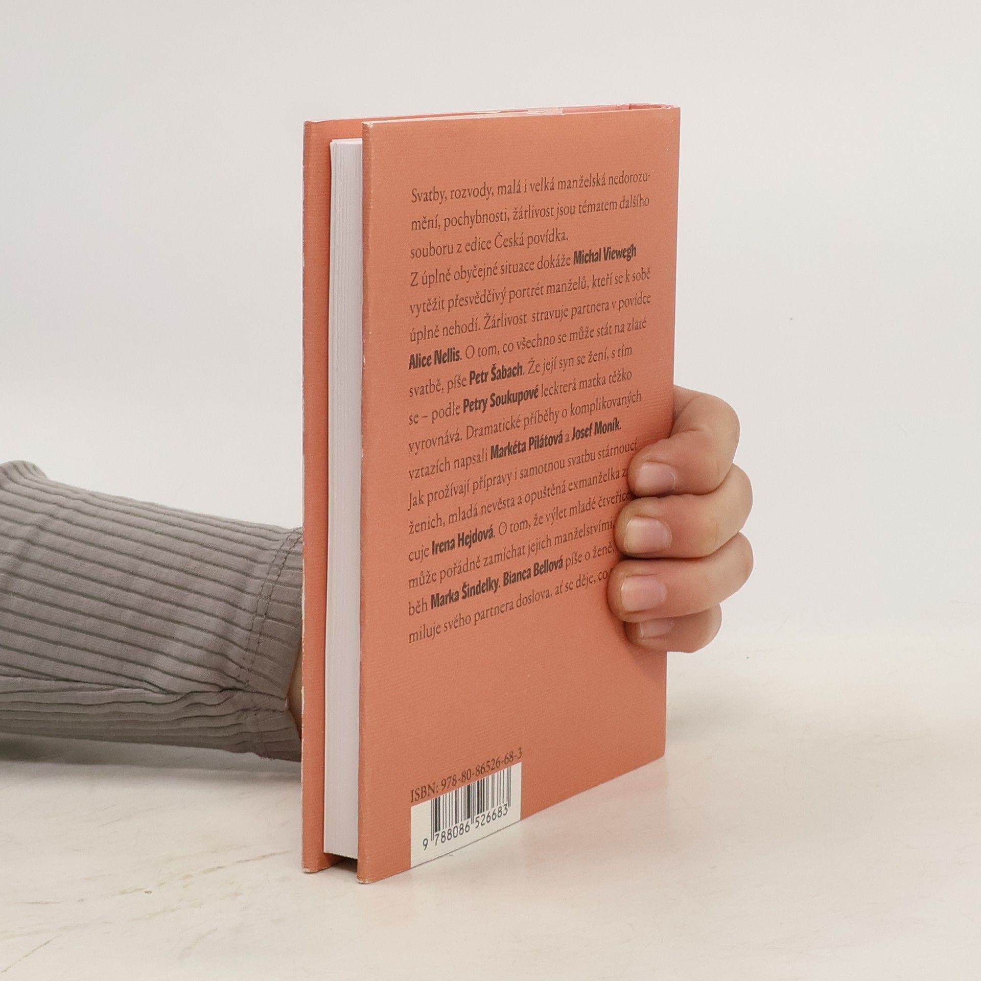 Svatby, rozvody, malá i velká manželská nedorozumění, pochybnosti, žárlivost jsou tématem dalšího souboru z edice Česká povídka. Z úplně obyčejné situace dokáže Michal Viewegh vytěžit přesvědčivý portrét manželů, kteří se k sobě úplně nehodí. Žárlivost stravuje partnera v povídce Alice Nellis. O tom, co všechno se může stát na zlaté svatbě, píše Petr Šabach. Že její syn se žení, s tím se - podle Petry Soukupové leckterá matka těžko vyrovnává. Dramatické příběhy o komplikovaných vztazích napsali Markéta Pilátová a Josef Moník. Jak prožívají přípravy i samotnou svatbu stárnoucí ženich, mladá nevěsta a opuštěná exmanželka zachycuje Irena Hejdová. O tom, že výlet mladé čtveřice může pořádně zamíchat jejich manželstvími, je příběh Marka Šindelky. Bianca Bellová píše o ženě, která miluje svého partnera doslova, ať se děje, co se děje.