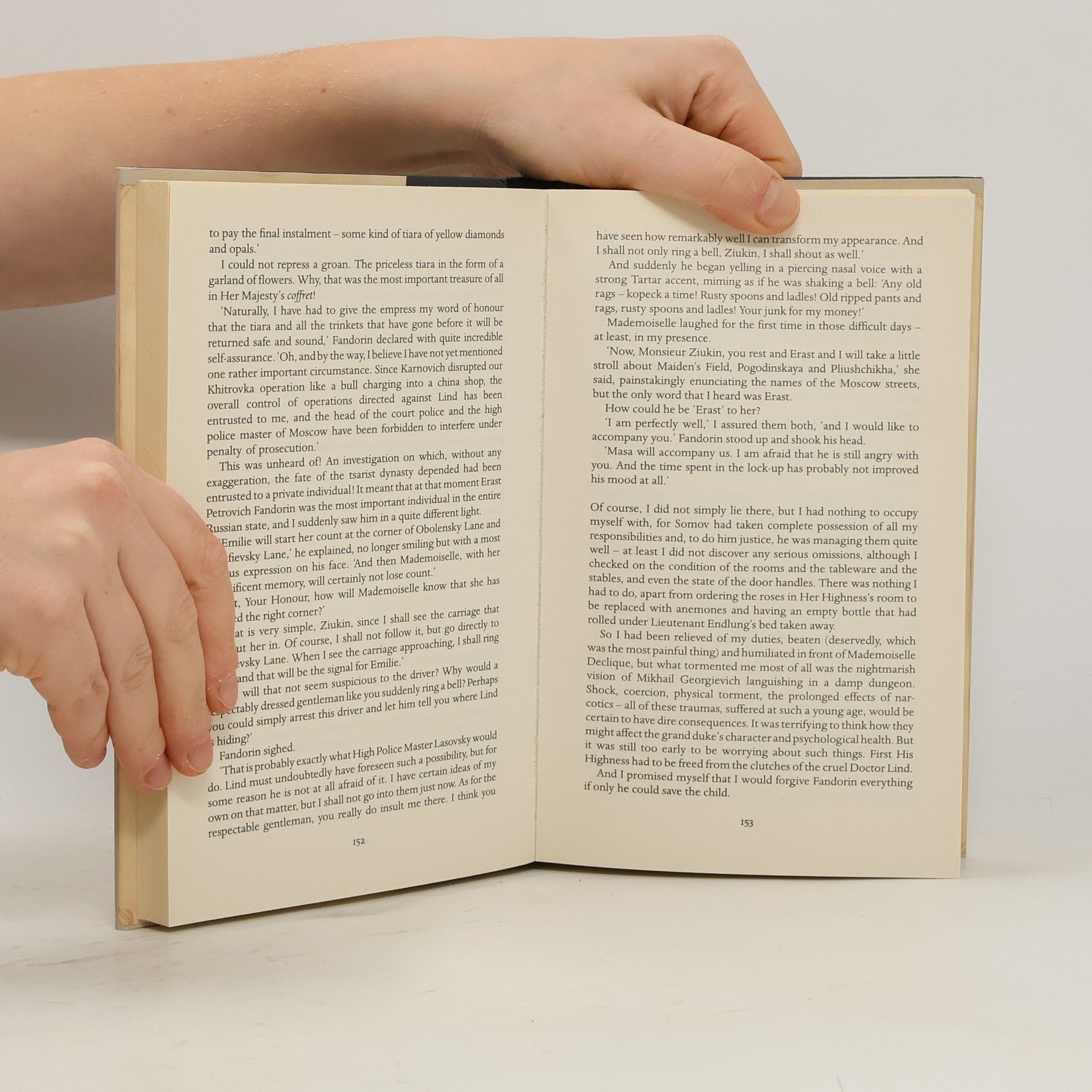 Grand Duke Georgii Alexandrovich arrives in Moscow for the coronation, accompanied by three of his children and their alluring governess, Mademoiselle Declique. During an afternoon stroll, daughter Xenia is dragged away by bandits, only to be rescued by an elegant gentleman and his oriental sidekick. The passing heroes introduce themselves as Fandorin and Masa, but panic ensues when they realise that four-year old Mikhail has been snatched in the confusion. A ransom letter arrives from Dr Lind, an international criminal and the Moriarty to Fandorin's Sherlock Holmes. The letter demands the handover of the Count Orlov, an enormous diamond on the royal sceptre which is due to play a part in the coronation. Fandorin suggests that the value of the stone is paid in 'installments', buying the party a week to ensure the young boy's safe return. But can the gentleman detective find Mikhail in time, or will the Grand Duke's son meet with the same gruesome fate as Lind's last abductee - whom Fandorin could do nothing to save? Will Fandorin succumb to the affections of Xenia? And why is he falling to his death on the very first page? Our inimitable hero returns in a tantalisingly closely-matched battle of wills and of wiles.
