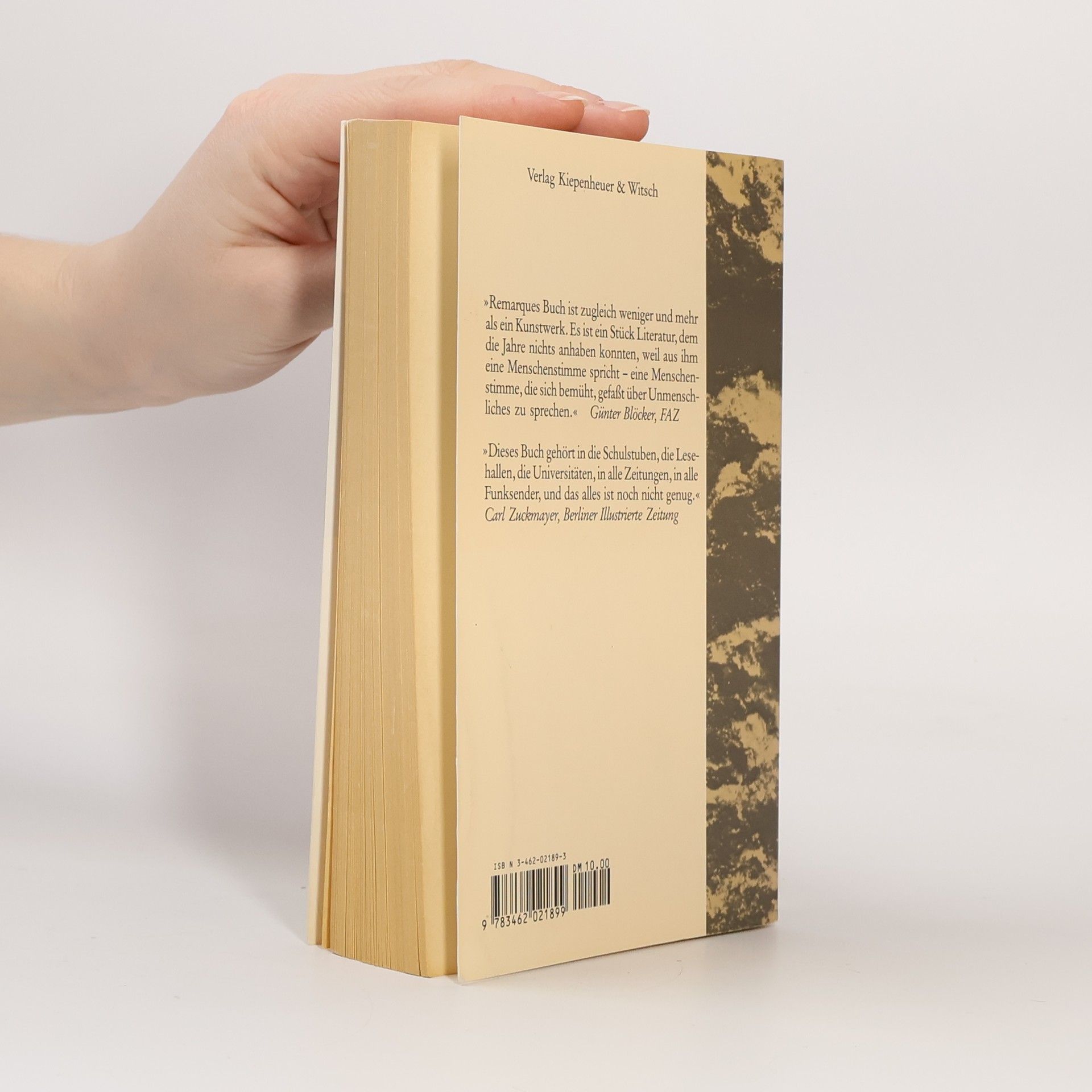 Paul Bäumer tritt zusammen mit seinen Klassenkameraden in die Armee des 1. Weltkrieges ein. Jung und enthusiastisch werden sie Soldaten. Aber trotz ihrer Ausbildung, zerbrechen sie an dem ersten Bombardement in den Schützngräben. Während der Krieg Jahr um Jahr hinzieht, hält Paul an einem Schwur fest: gegen die Prinzipien des Hasses zu kämpfen, die junge Männer einer ganzen Generation, aber in unterschiedlichen Uniformen bedeutungslos gegeneinander ausspielen--sollte er jemals lebend den Krieg überstehen. "Dieses Buch ist so gerecht und unmgerecht, wie ein Kriegsbuch sein muß, gerecht gegen die Opfer, ungerecht gegen die Treiber, die über Millionen Leichen sich Denkmale setzen. Diese Buch ist Wirklichkeit und Vision. Es zeichnet nicht nur äußere Handlung und äußere Dinge. Was in den Menschen vorgeht und wie es in ihnen vorgeht, warum Menschen sterben und wie sie sterben, das spüren wir hier... Der Kriegstag ist so in seinem Ablauf, seinen Pausen, seinen simplen Funktionen, seinen Lichtern und Spiegelungen aufgefangen, daß die umfassende dichterische Idee da ist, ohne gesetzt zu sein als Atmosphäre, spürbar in jeder Zeile.