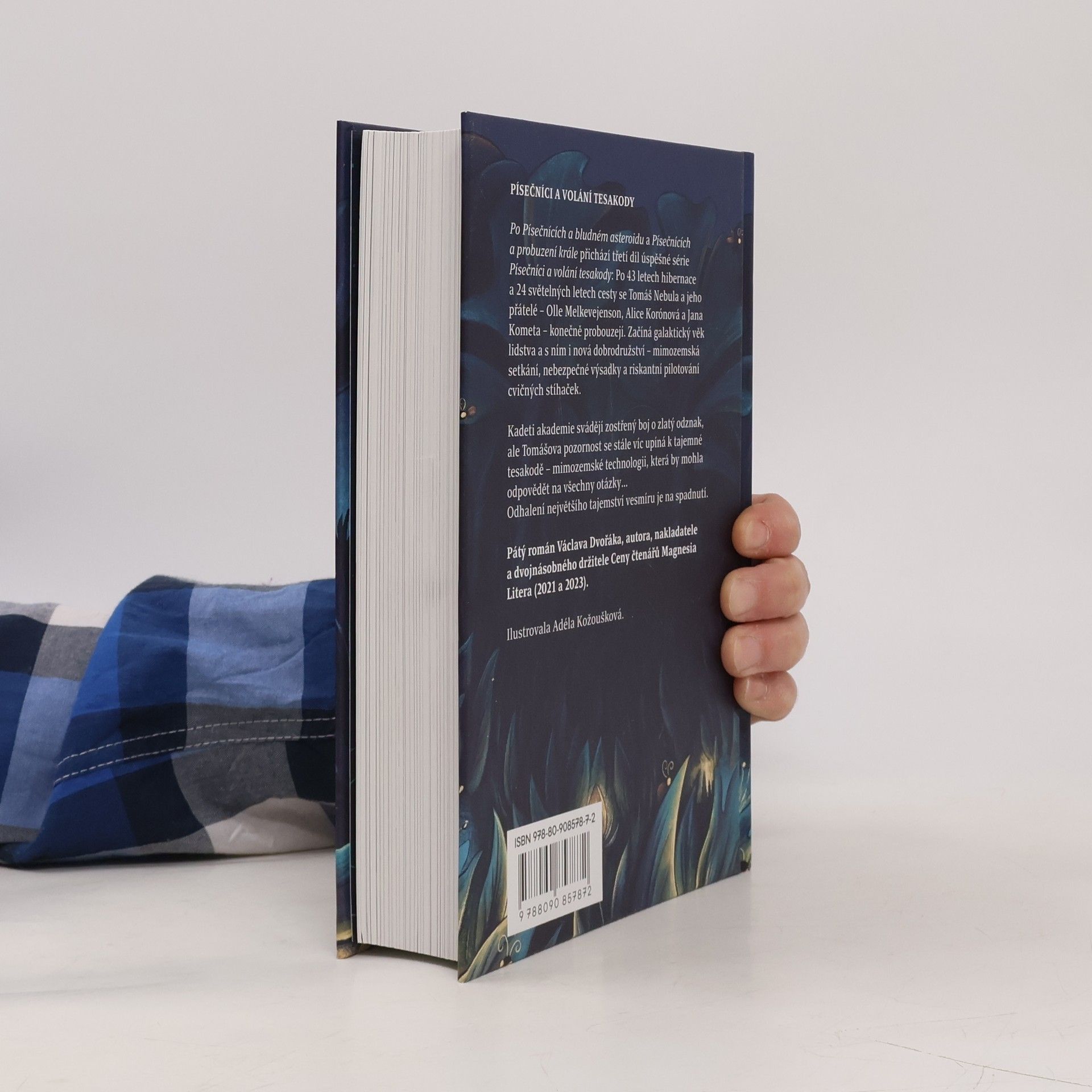 Vesmírná sága pokračuje: po Písečnících a bludném asteroidu a Písečnících a probuzení krále přichází třetí díl úspěšné série Písečníci a volání tesakody. Po 43 letech hibernace a 24 světelných letech cesty se Tomáš a jeho přátelé Olle, Alice a Jana konečně probouzejí. Začíná galaktický věk lidstva a s ním i nová dobrodružství - mimozemská setkání, nebezpečné výsadky a riskantní pilotování cvičných stíhaček. Kadeti akademie svádějí zostřený boj o zlatý odznak, ale Tomášova pozornost se stále víc upíná k tajemné tesakodě - mimozemskému artefaktu, který by mohl odpovědět na všechny otázky… Odhalte největší tajemství vesmíru!