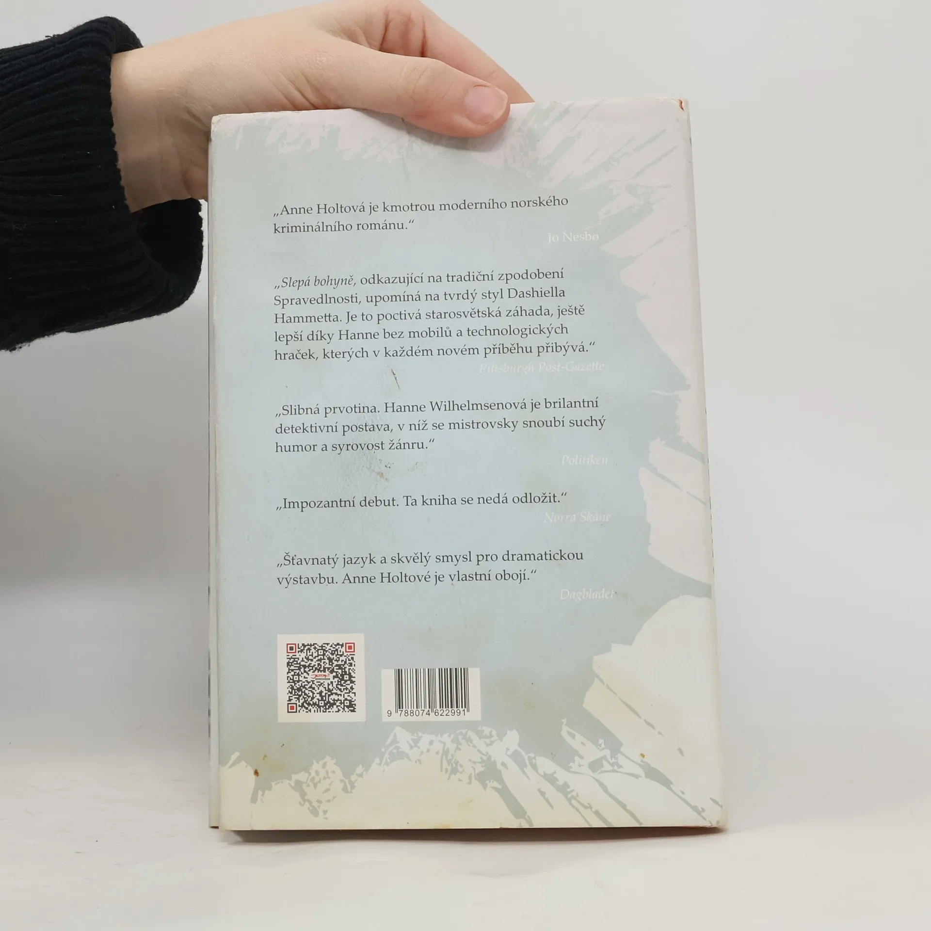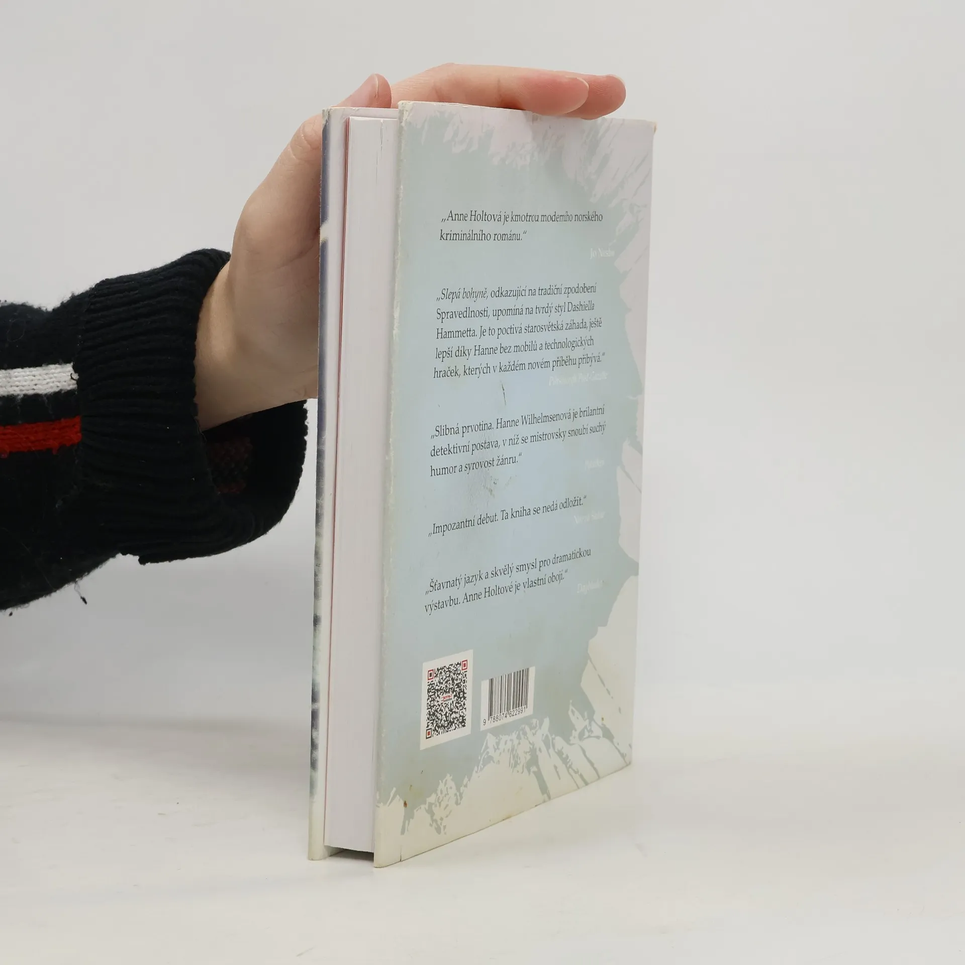 První díl z velice úspěšné kriminální řady od nejlepší norské autorky, bývalé ministryně spravedlnosti, která realisticky, nesentimentálně a mimořádně barvitě odhaluje, jak studená temnota panuje ve Skandinávii. Holtová dokázala vytvořit vskutku brilantní hrdinku, nebývale zajímavou, komplikovanou a nepříliš sympatickou Hanne Wilhelmsenovou. Bohyně spravedlnosti je slepá, a tak musí Hanne a její kolegové odvést práci za nic. Ocitáme se ve víru vyšetřování vraždy, která je spojená s obchodem s drogami. Postupně se rozplétá korupční aféra a nitky vedou až na ta nejvyšší místa. Prestižní ocenění Rivertonprisen za nejlepší norský krimi román roku 1994.