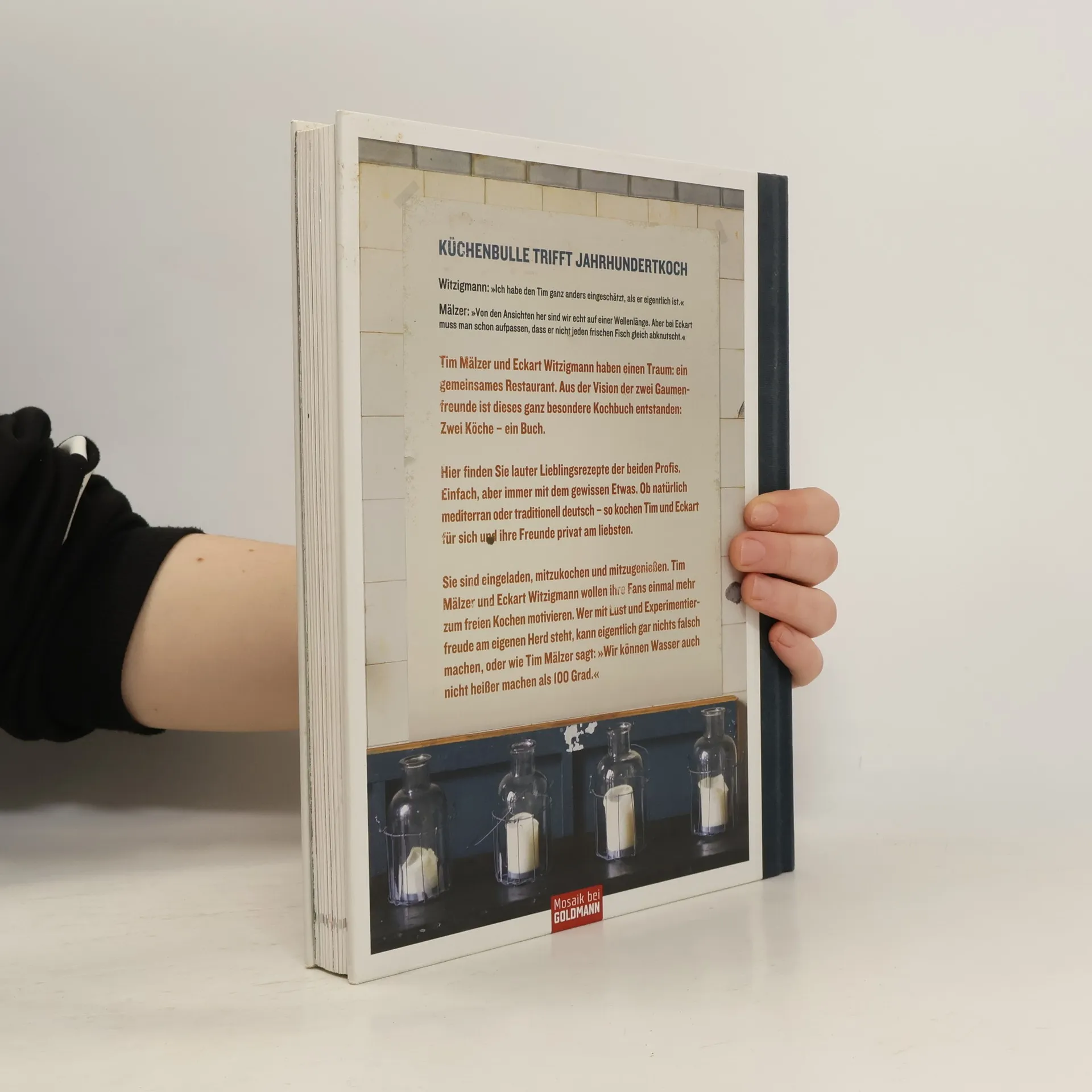 Kochen von Freunden, für Freunde lässig, cool und köstlich! Küchenbulle trifft Jahrhundertkoch Witzigmann: Ich habe den Tim ganz anders eingeschätzt, als er eigentlich ist. Mälzer: Von den Ansichten her sind wir echt auf einer Wellenlänge. Aber bei Eckart muss man schon aufpassen, dass er nicht jeden frischen Fisch gleich abknutscht. Tim Mälzer und Eckart Witzigmann haben einen Traum: ein gemeinsames Restaurant. Aus der Vision der zwei Gaumenfreunde ist dieses ganz besondere Kochbuch entstanden: Zwei Köche ein Buch. Hier finden Sie lauter Lieblingsrezepte der beiden Profis. Einfach, aber immer mit dem gewissen Etwas. Ob natürlich mediterran oder traditionell deutsch so kochen Tim und Eckart für sich und ihre Freunde privat am liebsten. Sie sind eingeladen, mitzukochen und mitzugenießen. Tim Mälzer und Eckart Witzigmann wollen ihre Fans einmal mehr zum freien Kochen motivieren. Wer mit Lust und Experimentierfreude am eigenen Herd steht, kann eigentlich gar nichts falsch machen oder wie Tim Mälzer sagt: Wir können Wasser auch nicht heißer machen als 100 Grad.