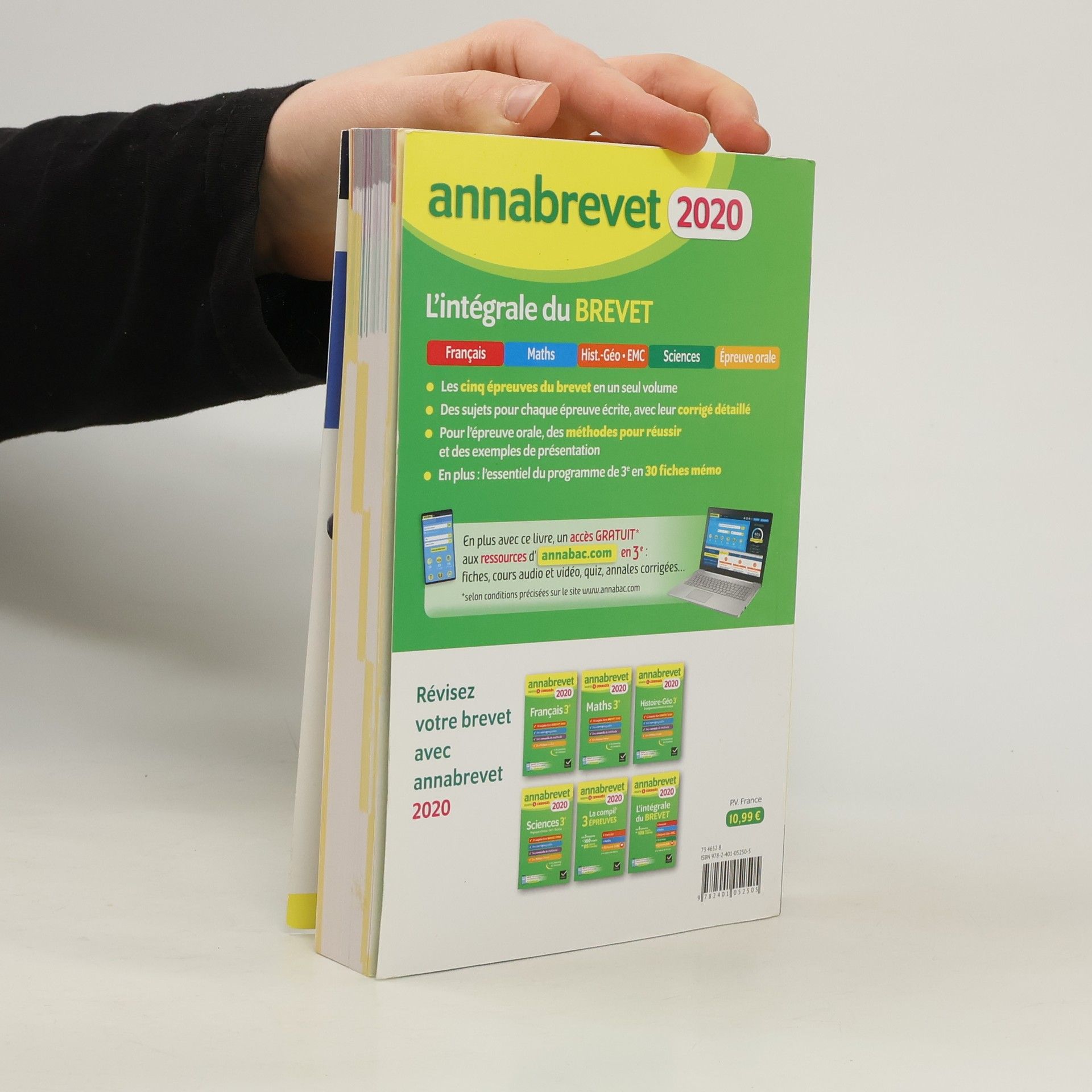 Un ouvrage de préparation aux cinq épreuves du nouveau brevet : les quatre épreuves écrites et l'épreuve orale. 90 sujets, leurs corrigés et des conseils de méthode. - Des sujets pour chacune des quatre épreuves écrites L'ouvrage comprend des sujets tombés en 2019 et des sujets complémentaires. Chaque sujet est associé à : - une aide pour comprendre et traiter le sujet, - un corrigé détaillé, - des fiches de révision sur les notions en jeu (à la fin de l'ouvrage). - Une section consacrée à l'épreuve orale L'élève trouvera également des simulations d'oral correspondant aux différentes formes de l'épreuve : soutenance d'un projet EPI ou présentation d'une oeuvre d'art. Ces sujets sont complétés par des fiches de méthode pour préparer et réussir sa présentation. - En plus, avec l'achat de l'ouvrage, un accès gratuit aux ressources du site http : //www. annabac. com en 3e : fiches et podcasts de cours, quiz, sujets de brevet corrigés.