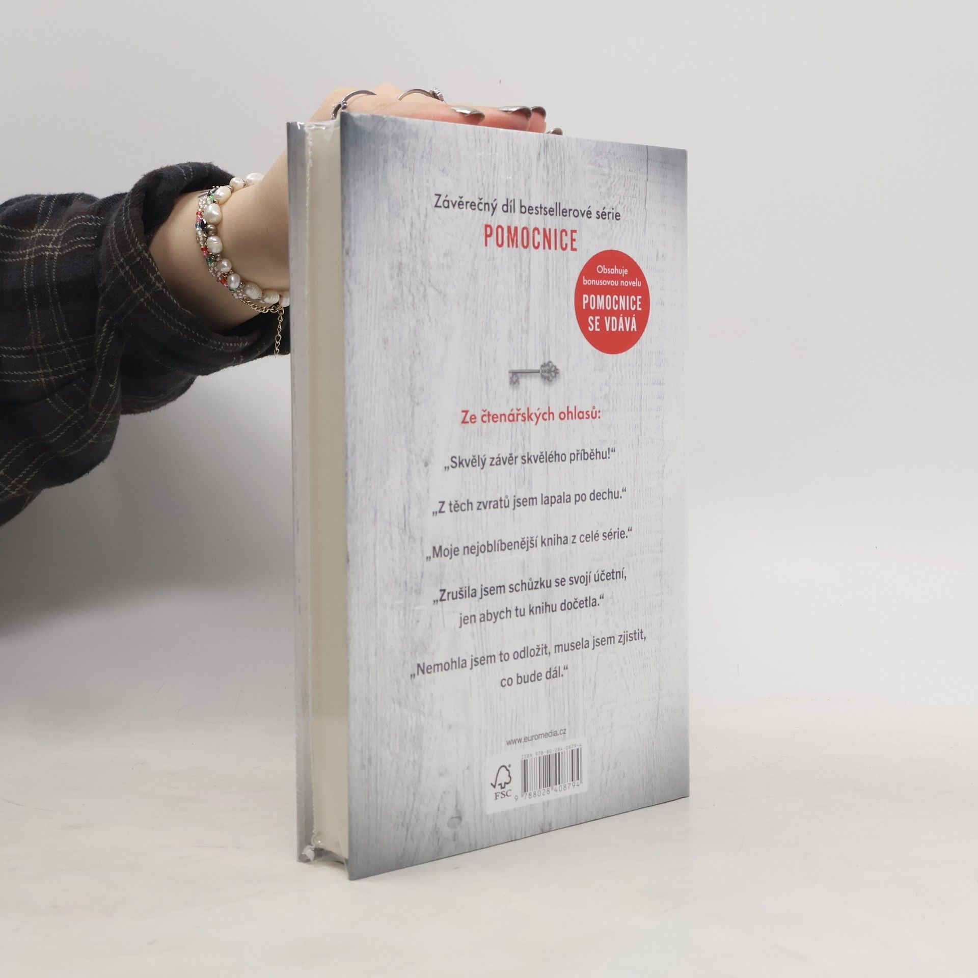 Třetí díl mrazivé série Pomocnice s bonusovou novelou! Má minulost už je dávno za mnou. A já udělám vše pro to, aby to tak zůstalo… Dřív jsem se starala o cizí domy a rodiny, teď mám vlastní krásný domov s velkou zahradou, kde si mohou hrát mé děti. Když nás pozve na večeři nová sousedka, dveře nám otevře její služebná v bílé zástěře a s vlasy staženými do pevného drdolu. Přesně vím, jaké to je být na jejím místě. Jenže její chladný pohled mě děsí… A to není jediná podivná věc v naší ulici. Mám pocit, že nás někdo pozoruje. Můj manžel se pozdě v noci vytrácí z domu. A když potkám ženu odnaproti, je jasné, co se mi snaží říct: Dávejte si pozor na své sousedy.