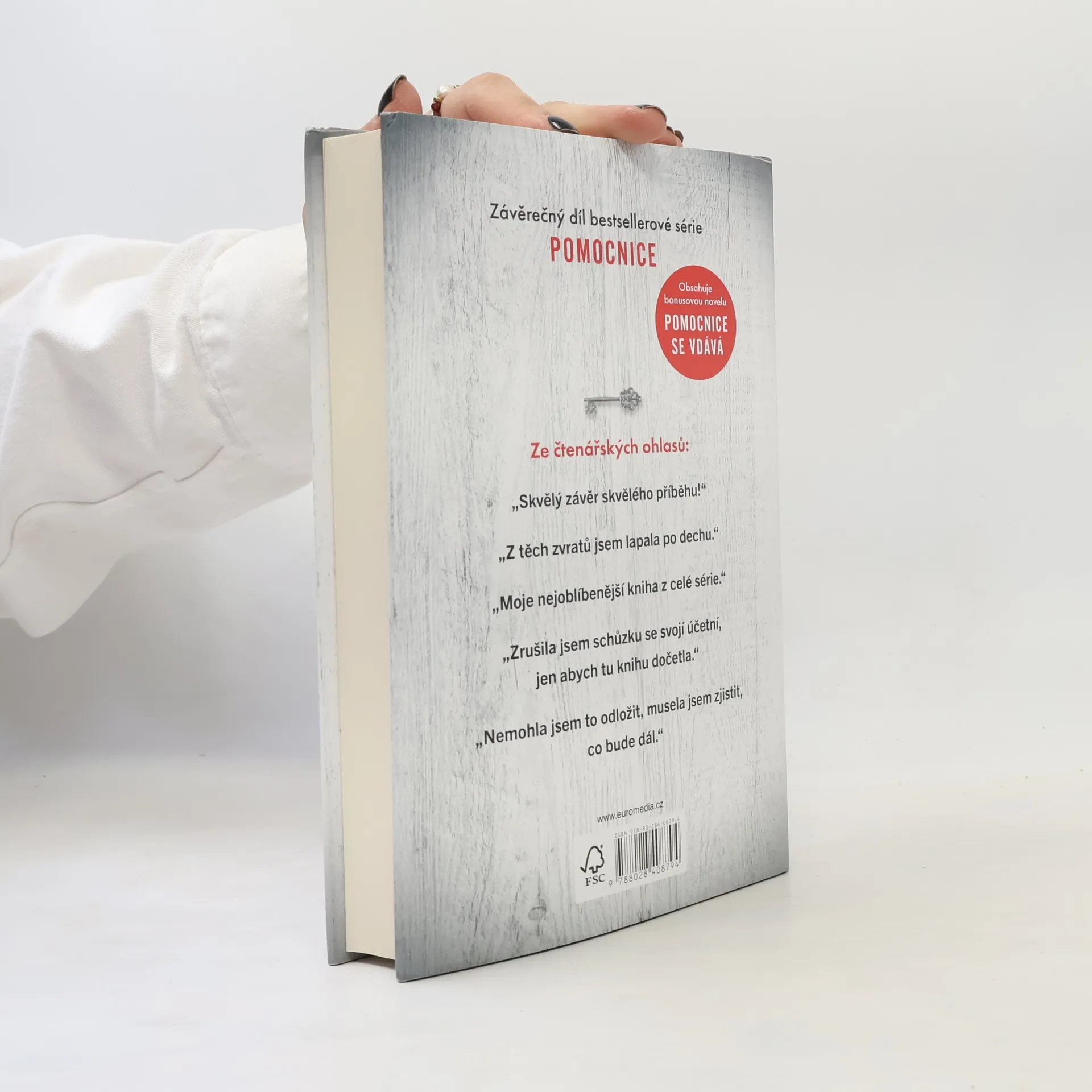 Třetí díl mrazivé série Pomocnice s bonusovou novelou! Má minulost už je dávno za mnou. A já udělám vše pro to, aby to tak zůstalo… Dřív jsem se starala o cizí domy a rodiny, teď mám vlastní krásný domov s velkou zahradou, kde si mohou hrát mé děti. Když nás pozve na večeři nová sousedka, dveře nám otevře její služebná v bílé zástěře a s vlasy staženými do pevného drdolu. Přesně vím, jaké to je být na jejím místě. Jenže její chladný pohled mě děsí… A to není jediná podivná věc v naší ulici. Mám pocit, že nás někdo pozoruje. Můj manžel se pozdě v noci vytrácí z domu. A když potkám ženu odnaproti, je jasné, co se mi snaží říct: Dávejte si pozor na své sousedy.