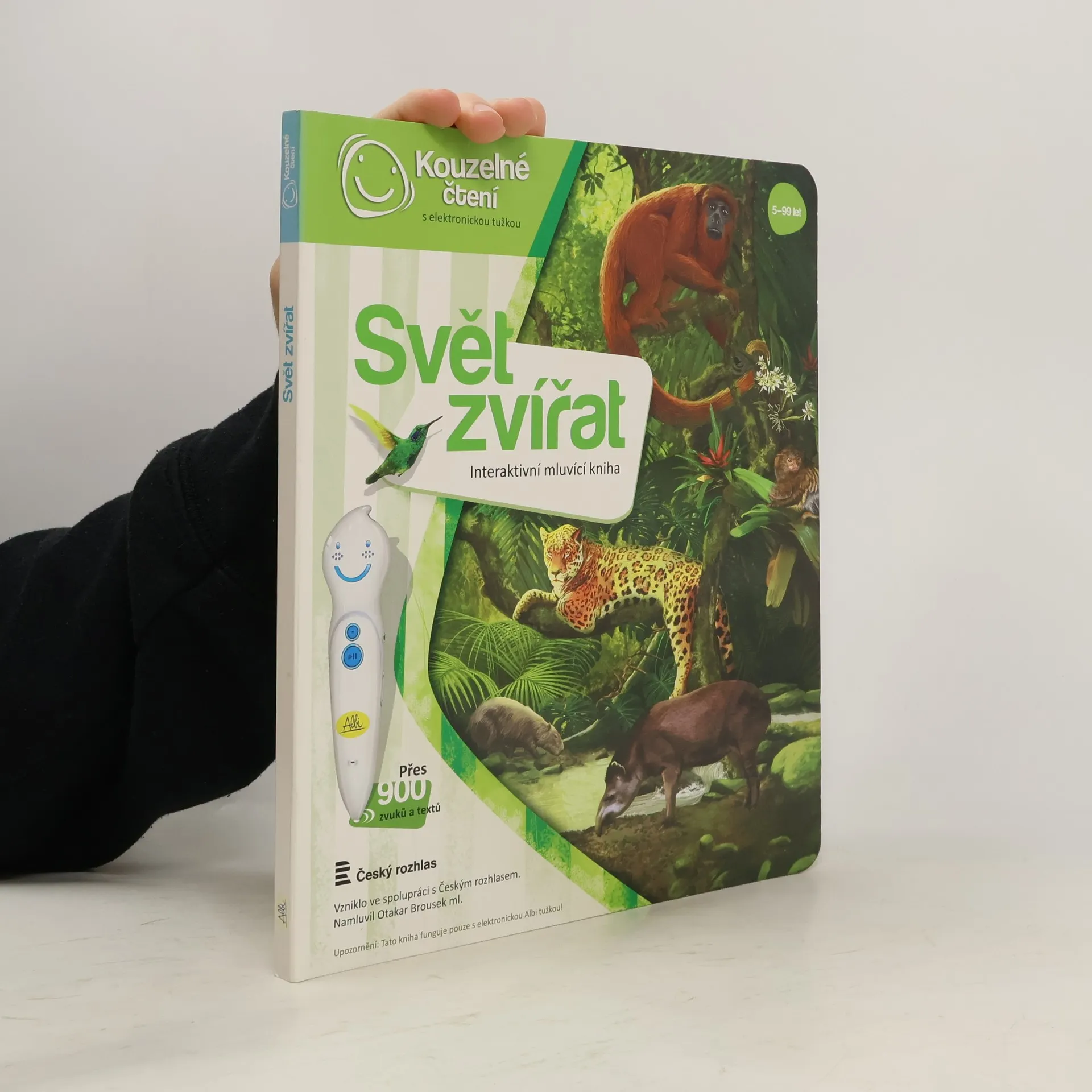 Ponořte se do světa zvířat! Seznamte se se zvířaty ze všech koutů světa a zjistěte, jaké zvuky vydávají, čím se živí nebo čím jsou jedinečná. Kniha vás tématicky provede osmi různými prostředími z naší planety, jako je les, savana, poušť, moře a další. Na každé straně se dozvíte, jaká zvířata v daném prostředí žijí, jak se jmenují, jaké zvuky vydávají a čím jsou zajímavá. Své znalosti si pak můžete ověřit pomocí zábavných kvízů, které jsou vždy rozděleny do tří kategorií: najdi zvíře podle názvu, najdi zvíře podle zvuku, najdi zvíře podle zajímavosti. Kniha je namluvena známým českým hercem Otakarem Brouskem ml. Kniha obsahuje přes 900 zvuků a textů. Kniha vznikla ve spolupráci s Českým rozhlasem.