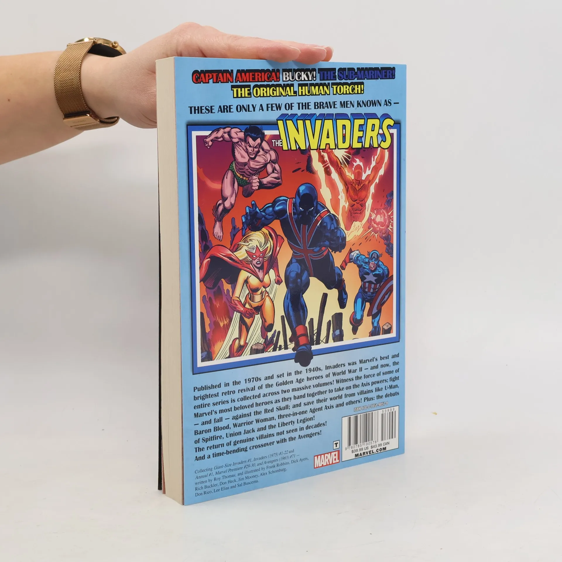 Published in the 1970s, set in the 1940s, the Invaders was Marvel's best and brightest retro revival of the Golden Age heroes of World War II...and now, the series is collected across two massive volumes! Captain America, the Human Torch and the Sub-Mariner, plus scrappy sidekicks Bucky and Toro first banded together when the United States entered WWII! Now, relive the heroes' untold tales as they face the evil Axis powers; fall under the Red Skull's spell; and battle U-Man, Baron Blood, Master Man, Warrior Woman, the three-in-one Agent Axis and more! COLLECTING: GIANT-SIZE INVADERS 1; INVADERS 1-22, ANNUAL 1; MARVEL PREMIERE 29-30; AVENGERS 71
