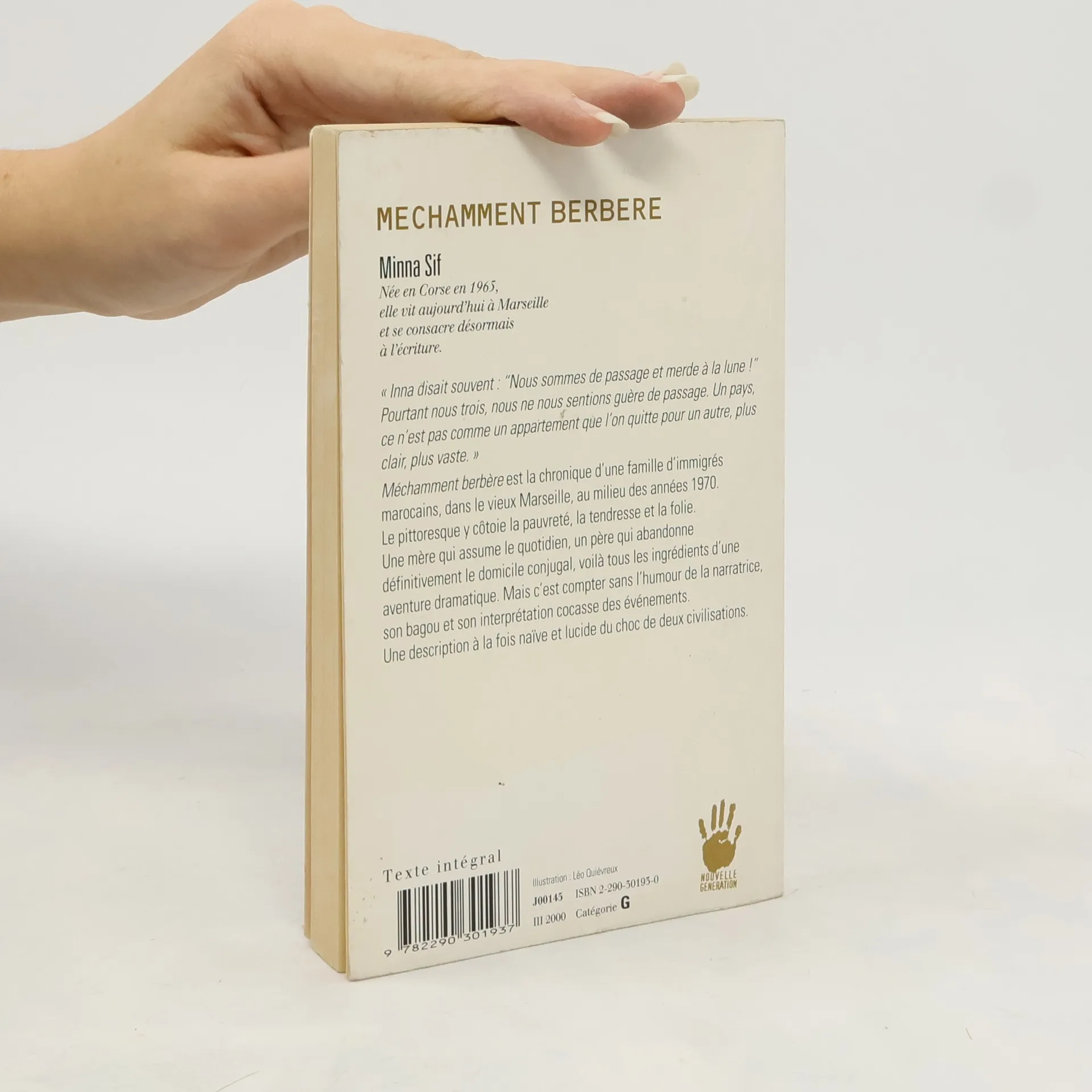 " Inna disait souvent : " Nous sommes de passage et merde à la lune ! " Pourtant nous trois, nous ne nous sentions guère de passage. Un pays, ce n'est pas comme un appartement que l'on quitte pour un autre, clair plus vaste. " Méchamment berbère est la chronique d'une famille d'immigrés marocains, dans le vieux Marseille, au milieu des années 1970. Le pittoresque y côtoie la pauvreté, la tendresse et la folie. Une mère qui assume le quotidien, un père qui abandonne définitivement le domicile conjugal, voilà tous les ingrédients d'une aventure dramatique. Mais c'est compter sans l'humour de la narratrice, son bagou et son interprétation cocasse des événements. Une description à la fois naïve et lucide du choc de deux civilisations.