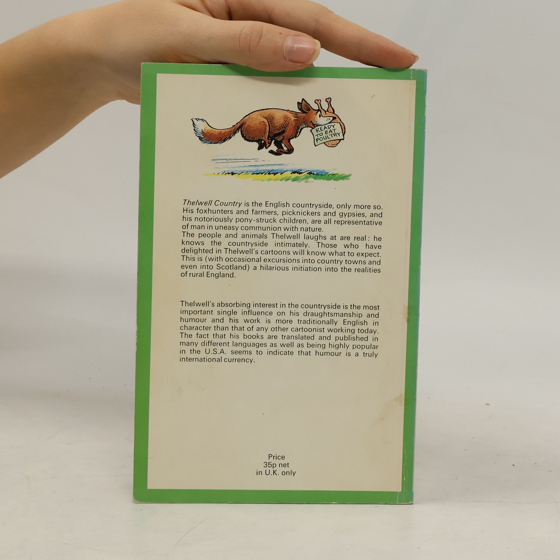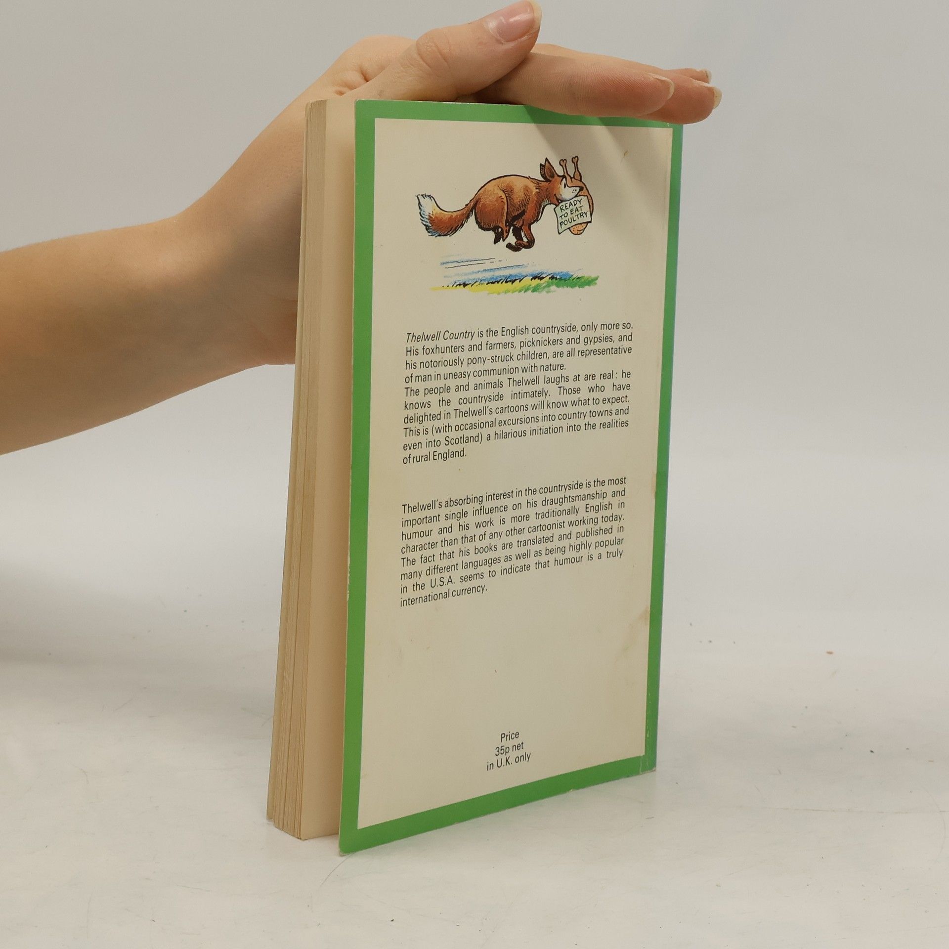 Thelwell Country is the English countryside, only more so. His foxhunters and farmers, picnickers and gypsies, and his notoriously pony-struck children, are all representative of man in uneasy communion with nature. The people and animals Thelwell laughs at are real: he knows the countryside intimately. As H. F. Ellis of Punch says in his foreword, this is 'a recognisable world where bulls have mass and momentum, stone walls have knobbliness and texture, and combine harvesters squelch heavily through genuine mud'. Those who have delighted in Thelwell's cartoons in Punch and News Chronicle, or in the pages of his first book Angels on Horseback, will know what to expect. This is (with occasional excursions into country towns and even into Scotland) a hilarious initiation into the realities of rural England. This description is from the flap of the 1959 edition.
