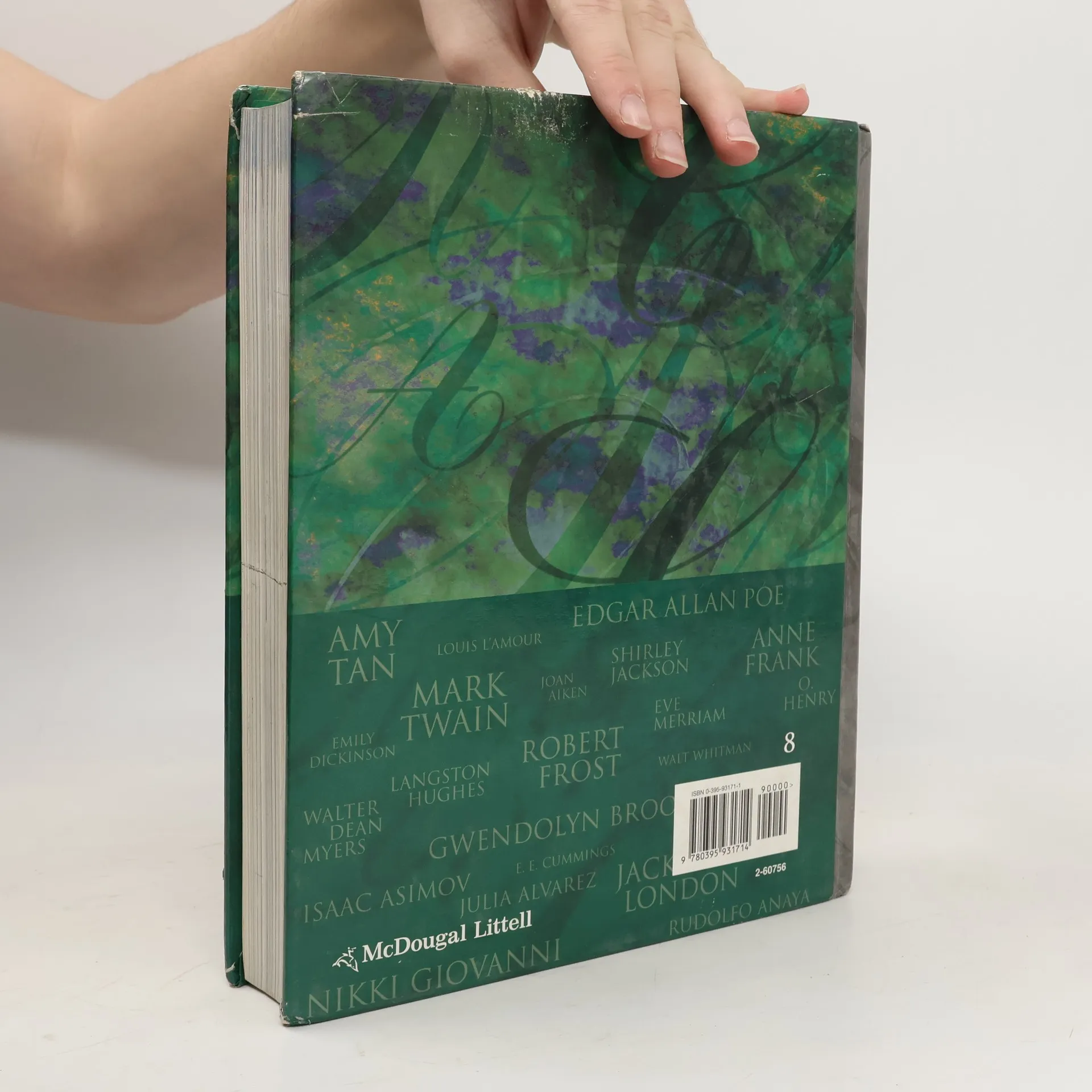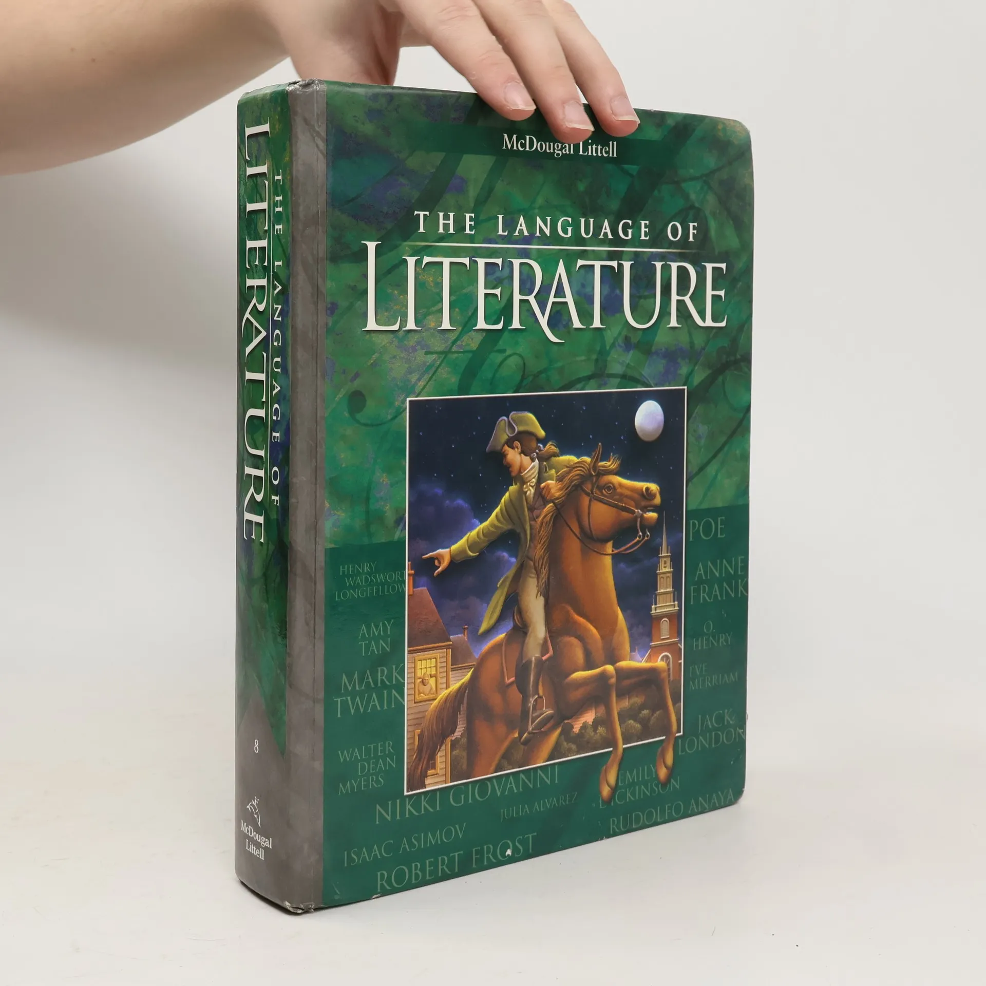 McDougal Littell Language of Literature, Henry Wadsworth Longfellow, Amy Tan, Mark Twain, Walter Dean Myers, Nikki Giovanni, Julia Alvarez, Isaac Asimov, Robert Frost, Edgar Allan Poe, Anne Frank, O. Henry, Merriam-Webster, Jack London, Emily Dickinson, Rudolfo Anaya