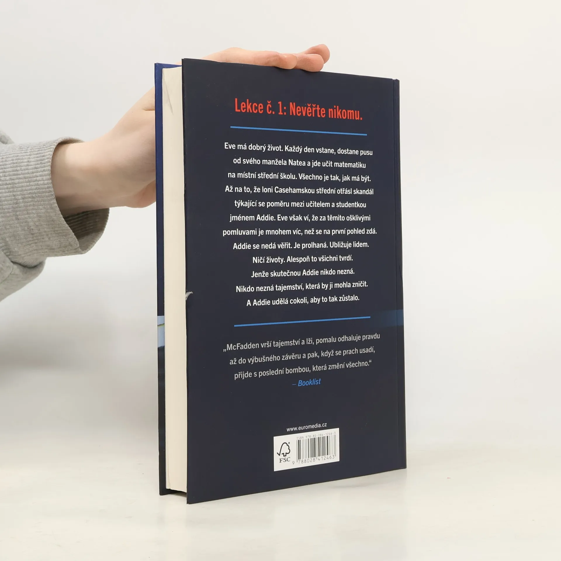 Eve má dobrý život. Každý den vstane, dostane pusu od svého manžela Natea a jde učit matematiku na místní střední školu. Všechno je tak, jak má být. Až na to, že loni casehamskou střední otřásl skandál týkající se poměru mezi učitelem a studentkou jménem Addie. Eve však ví, že za těmito ošklivými pomluvami je mnohem víc, než se na první pohled zdá. Addie se nedá věřit. Je prolhaná. Ubližuje lidem. Ničí životy. Alespoň to všichni tvrdí. Jenže skutečnou Addie nikdo nezná. Nikdo nezná tajemství, která by ji mohla zničit. A Addie udělá cokoli, aby to tak zůstalo.