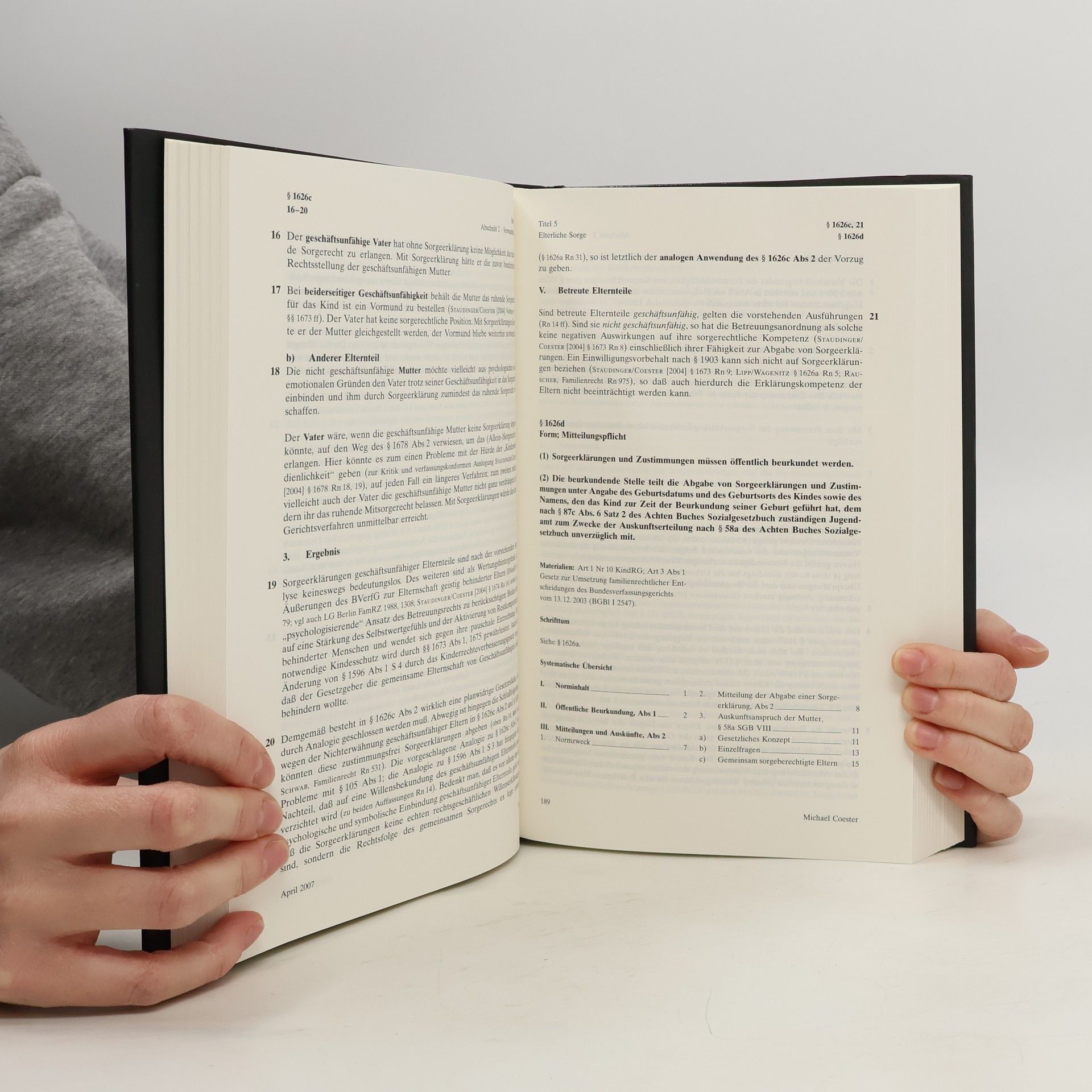 Mit § 1626 wird in der Neubearbeitung 2007 die Eingangs- und Grundvorschrift der gesamten Elterlichen Sorge umfassend wie in keinem anderen Kommentar erläutert. Durch die seit vielen Jahren anhaltenden gerichtlichen (und rechtspolitischen) Konflikte über die Sorge für Scheidungs- und nichteheliche Kinder haben auch die §§ 1627 und 1628 eine ganz neue Bedeutung gewonnen. Die Neubearbeitung geht ausführlich auf diese Problematik ein und bietet neue Denkansätze. Besonderes Gewicht wird zudem auf die Regelung der gesetzlichen Vertretung und der Prozessstandschaft, § 1629, gelegt, die selbst geübten Praktikern immer wieder Schwierigkeiten bereitet. Die in der Praxis heftig umkämpften Bereiche der Personensorge, der religiösen Kindererziehung, des Rechts des Kindes auf gewaltfreie Erziehung und der Herausgabekonflikte um Pflegekinder, werden auf aktuellem Stand präzise kommentiert.