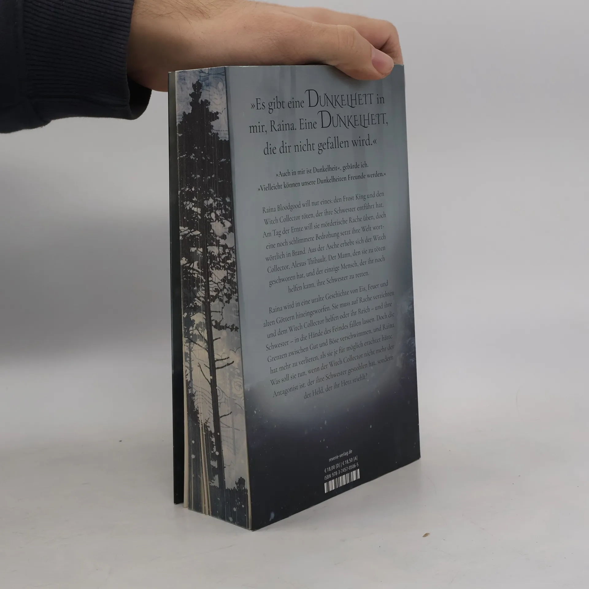 „Es gibt Dunkelheit in mir,Raina. Eine Dunkelheit, die dir nicht gefallen wird.“„In mir ist auch Dunkelheit“, gebärde ich. „Vielleicht können unsere Dunkelheiten Freunde sein.“Raina Bloodgood will nur eines: den Frost King und den Witch Collector töten, der ihre Schwester entführt hat. Am Tag der Ernte will sie mörderische Rache üben, doch eine noch schlimmere Bedrohung setzt ihre Welt wortwörtlich in Brand. Aus der Asche erhebt sich der Witch Collector, Alexus Thibault. Der Mann, den sie zu töten geschworen hat, und der einzige Mensch, der ihr noch helfen kann, ihre Schwester zu retten.Raina wird in eine uralte Geschichte von Eis, Feuer und alten Göttern hineingeworfen. Sie muss auf Rache verzichten und dem Witch Collector helfen oder ihr Reich - und ihre Schwester - in die Hände des Feindes fallen lassen. Doch die Grenzen zwischen Gut und Böse verschwimmen, und Raina hat mehr zu verlieren, als sie je für möglich erachtet hätte. Was soll sie tun, wenn der Witch Collector nicht mehr der Antagonist ist, der ihre Schwester gestohlen hat, sondern der Held, der ihr Herz stiehlt?