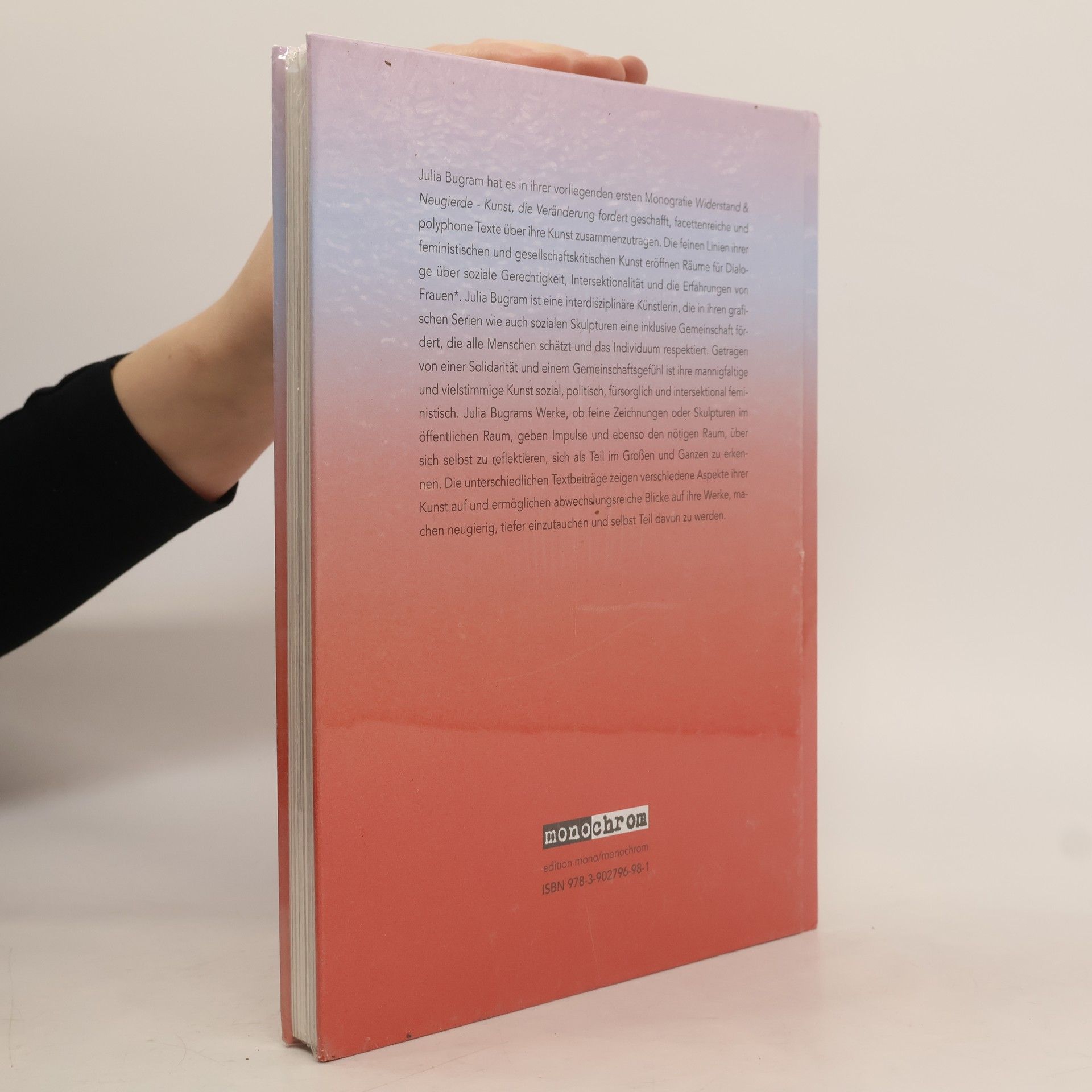 Julia Bugram hat es in ihrer vorliegenden ersten Monografie WIDERSTAND & NEUGIERDE – KUNST, DIE VERÄNDERUNG FORDERT geschafft, facettenreiche und polyphone Texte über ihre Kunst zusammenzutragen. Die feinen Linien ihrer feministischen und gesellschaftskritischen Kunst eröffnen Räume für Dialoge über soziale Gerechtigkeit, Intersektionalität und die Erfahrungen von Frauen*. Julia Bugram ist eine interdisziplinäre Künstlerin, die in ihren grafischen Serien wie auch sozialen Skulpturen eine inklusive Gemeinschaft fördert, die alle Menschen schätzt und das Individuum respektiert. Getragen von einer Solidarität und einem Gemeinschaftsgefühl ist ihre mannigfaltige und vielstimmige Kunst sozial, politisch, fürsorglich und intersektional feministisch. Julia Bugrams Werke, ob feine Zeichnungen oder Skulpturen im öffentlichen Raum, geben Impulse und ebenso den nötigen Raum, über sich selbst zu reflektieren, sich als Teil im Großen und Ganzen zu erkennen. Die unterschiedlichen Textbeiträge zeigen verschiedene Aspekte ihrer Kunst auf und ermöglichen abwechslungsreiche Blicke auf ihre Werke, machen neugierig, tiefer einzutauchen und selbst Teil davon zu werden.