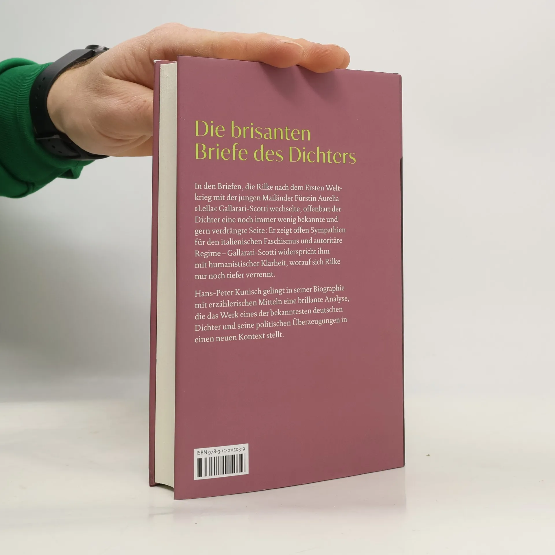 Die brisanten Briefe des Dichters In den Briefen, die Rilke insbesondere nach dem Ersten Weltkrieg mit der jungen Mailänder Fürstin Aurelia Gallarati-Scotti wechselte, offenbart der Dichter eine noch immer wenig bekannte und gern verdrängte Seite: Er zeigt offen Sympathien für den italienischen Faschismus und autoritäre Regime – Gallarati-Scotti widerspricht ihm mit humanistischer Klarheit, woraufhin sich Rilke nur noch tiefer verrennt. Hans-Peter Kunisch gelingt in seiner Biografie mit erzählerischen Mitteln eine brillante Analyse, die das Werk eines der bekanntesten deutschen Dichter und seine politischen Überzeugungen in einen neuen Kontext stellt.