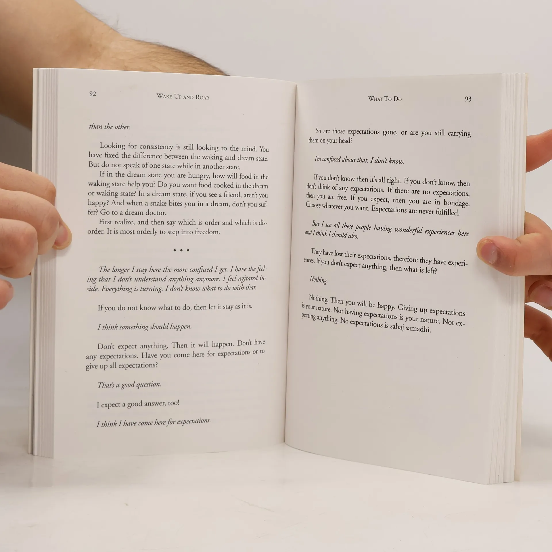 This book introduces to the world an extraordinary development. Full awakening is possible here and now for everybody, regardless of background, practice or personal circumstances. This possibility is the teaching and transmission of Sri H. W. L. Poonja. Many people have experienced glimpses of truth through psychedelics or meditating or unexpected moments of bliss. Yet, because of incorrect understanding, these moments usually get incorporated into the ego as just another experience. There is an unspoken belief that it is not possible to be totally awakened in this lifetime. Wake Up and Roar announces the possibility of true Freedom now. No postponement or practice necessary! This is Sri Poonjaji's gift to the world.