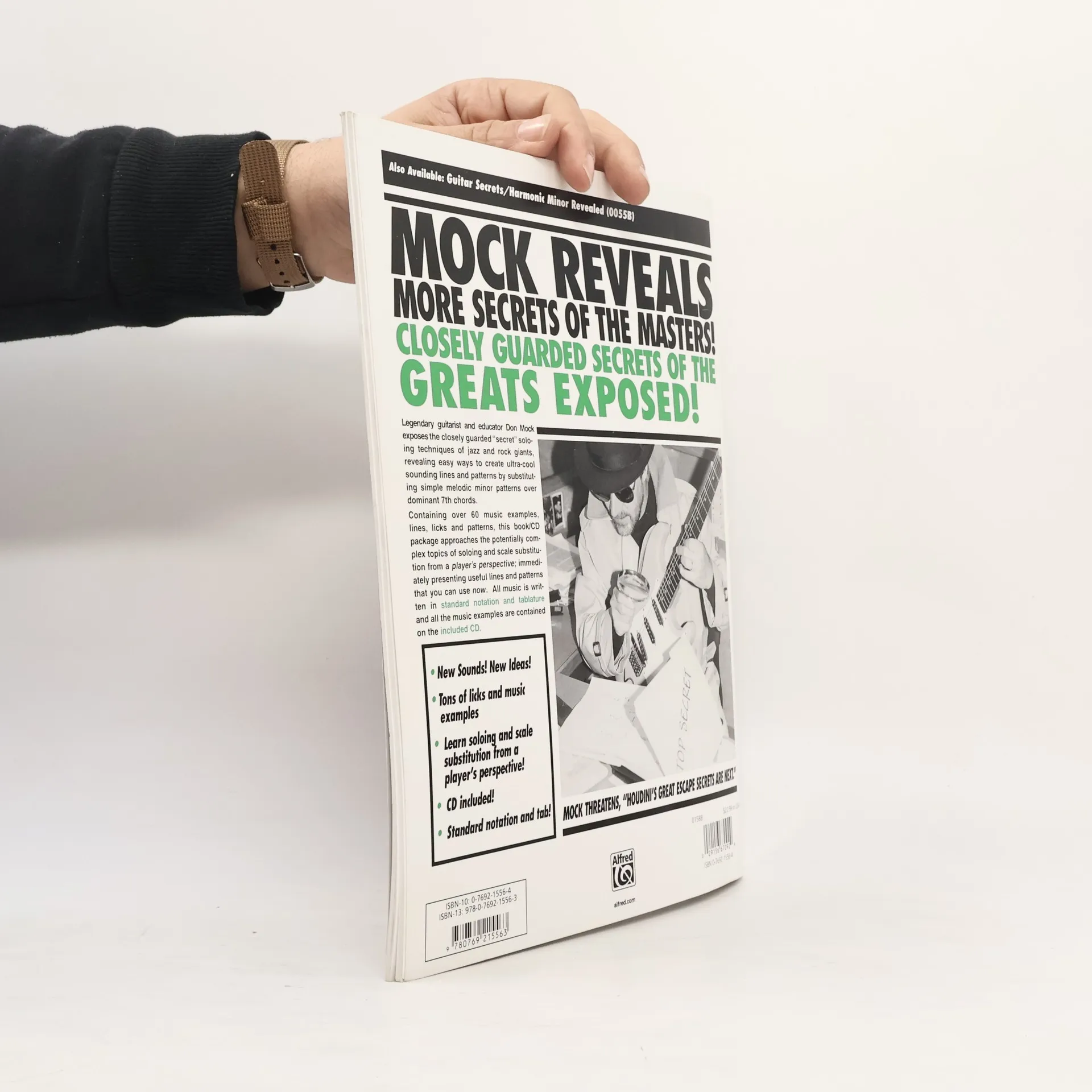 Legendary guitarist and educator Don Mock exposes the closely-guarded secret" soloing techniques of jazz and rock giants, revealing easy ways to create ultra-cool sounding lines and patterns by substituting simple harmonic minor patterns over dominant 7th chords. These book/audio packages each contain over 60 music examples, lines, licks and patterns. All music is written in standard notation and tablature."