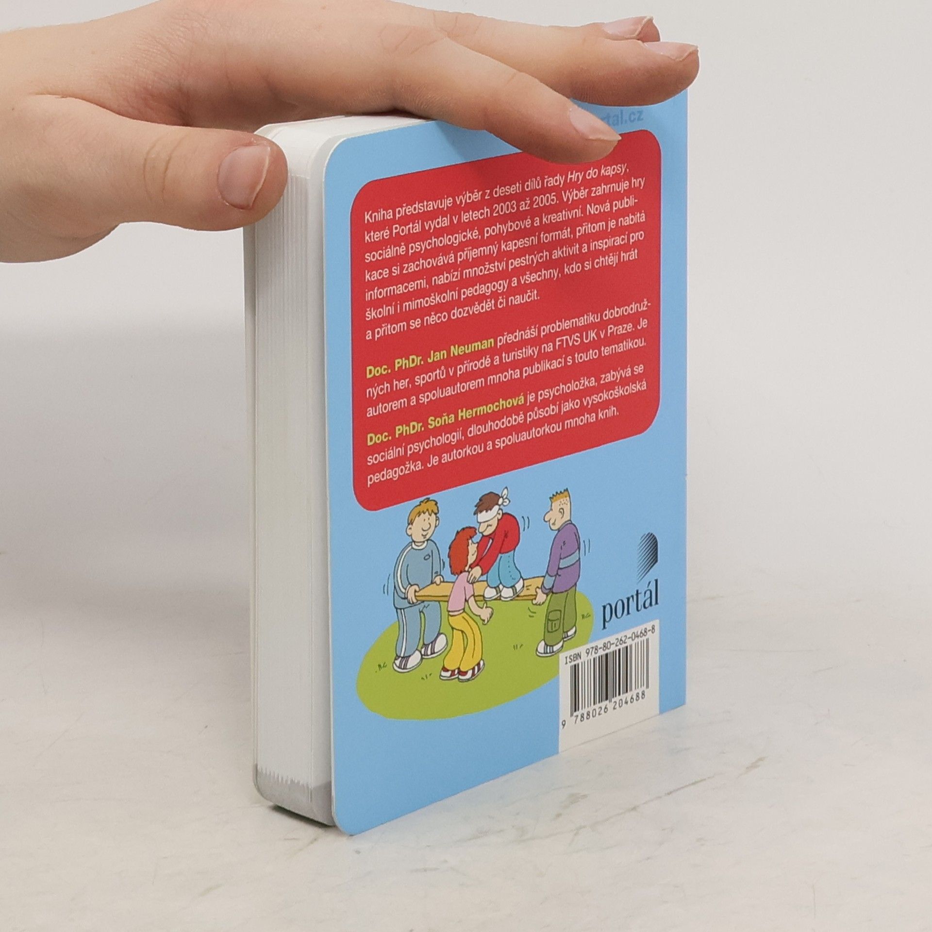 Kniha představuje výběr ze všech desíti dílů řady Hry do kapsy, které Portál vydal v letech 2003 až 2005. Výběr zahrnuje to nejlepší z oblasti her sociálně psychologických, motorických a kreativních, které deset malých knížeček postupně nabízelo. Nová publikace si zachovává příjemný kapesní formát. Kolektiv autorů vybral a aktualizoval ty nejzajímavější inspirace pro školní i mimoškolní pedagogy a všechny, kdo si chtějí hrát a přitom se něco dozvědět či naučit. Jan Neumann přednáší problematiku dobrodružných her, sportů v přírodě a turistiky na FTVS UK v Praze. Je autorem mnoha úspěšných knih.