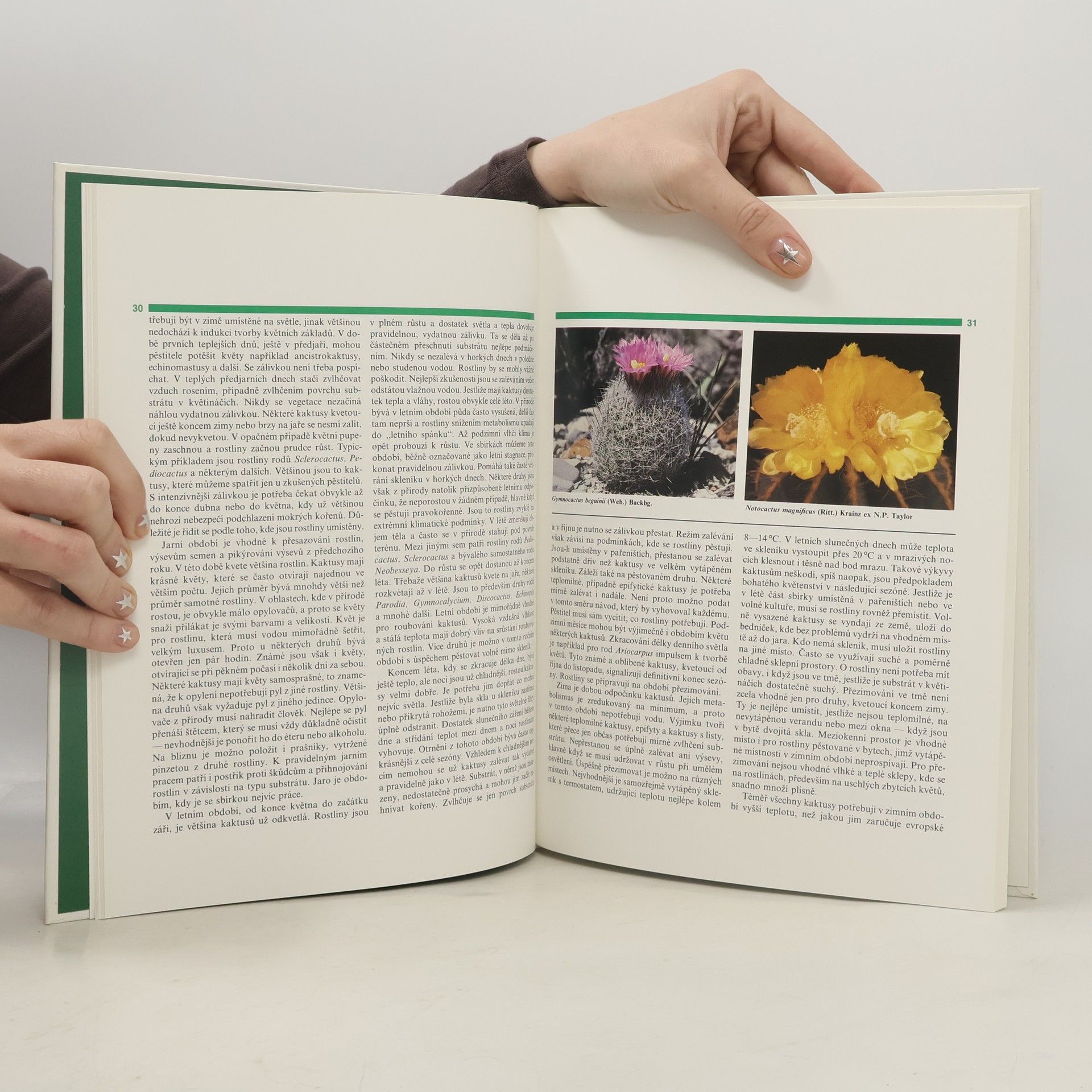 Terminologie, kde rostou kaktusy v přírodě, pěstování kaktusů, přesazování, rozmnožování, choroby a škůdci. Obrazová část: Severoamerické kulovité kaktusy, Jihoamerické kulovité kaktusy, Cereusy, Opuncie, Kaktusy v rukou zahradníků.