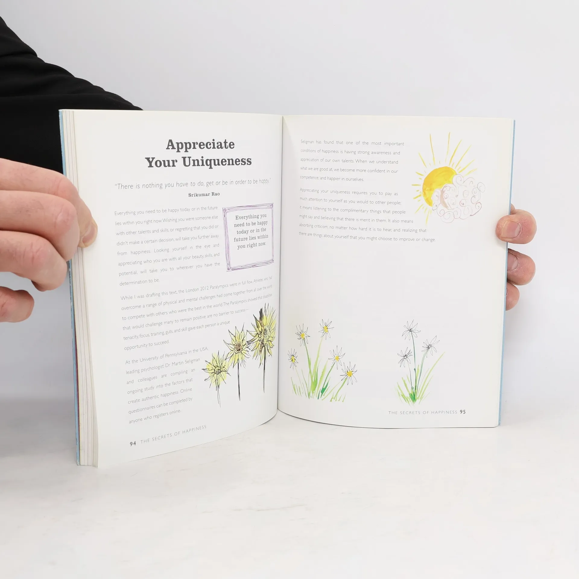 Swap worry and anxiety for joy and contentment and choose to live in a happier way. Happiness is like a riddle. The more we want it and the more we seek it, the more elusive it becomes. And yet, when we are least conscious of looking for it, it can envelop us in a warm sense of contentment and belonging, making a single moment precious and valuable beyond measure. A feeling of happiness has the power to light up our whole being. Scientists will tell us that it has the power to heal and to extend life. It is the ingredient we all seek to make our lives complete. Like the air we breathe, we are not conscious that we need it, until it disappears. Happiness makes us feel glad to be alive. The Secrets of Happiness offers you a more joyous approach to living and thinking; a shift in approach that may reframe your view of the world; simple things you can do to re-consider your life - consciously - so that you can decide whether now is the time when you can be happier. It includes strategies to warm the heart and open the mind to the extraordinary power of happiness. It shares the experiences of others and provides the closest we might have to a happiness 'formula'. The good news is, happiness is within everyone's grasp. It has the power to transform, heal and restore life back to one worth living.