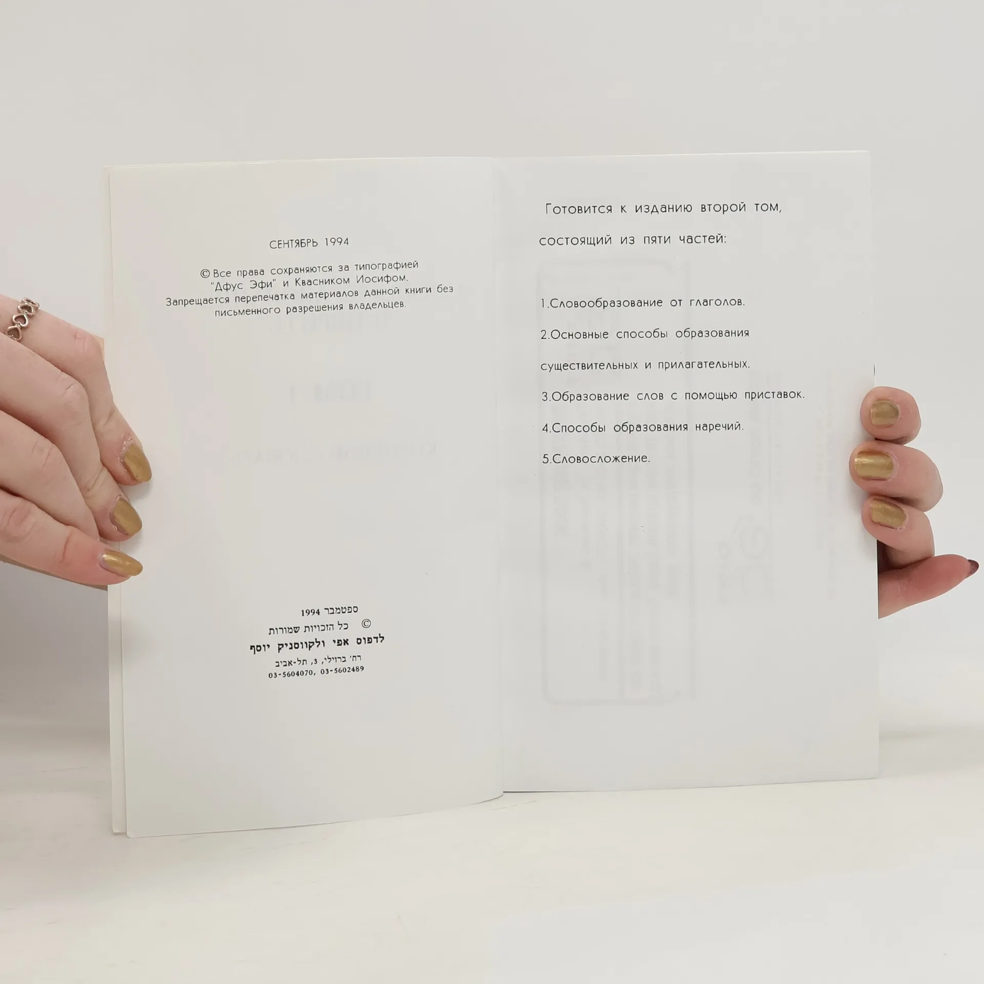 Словообразование в иврите. Том 1, Iosif Kvasnik