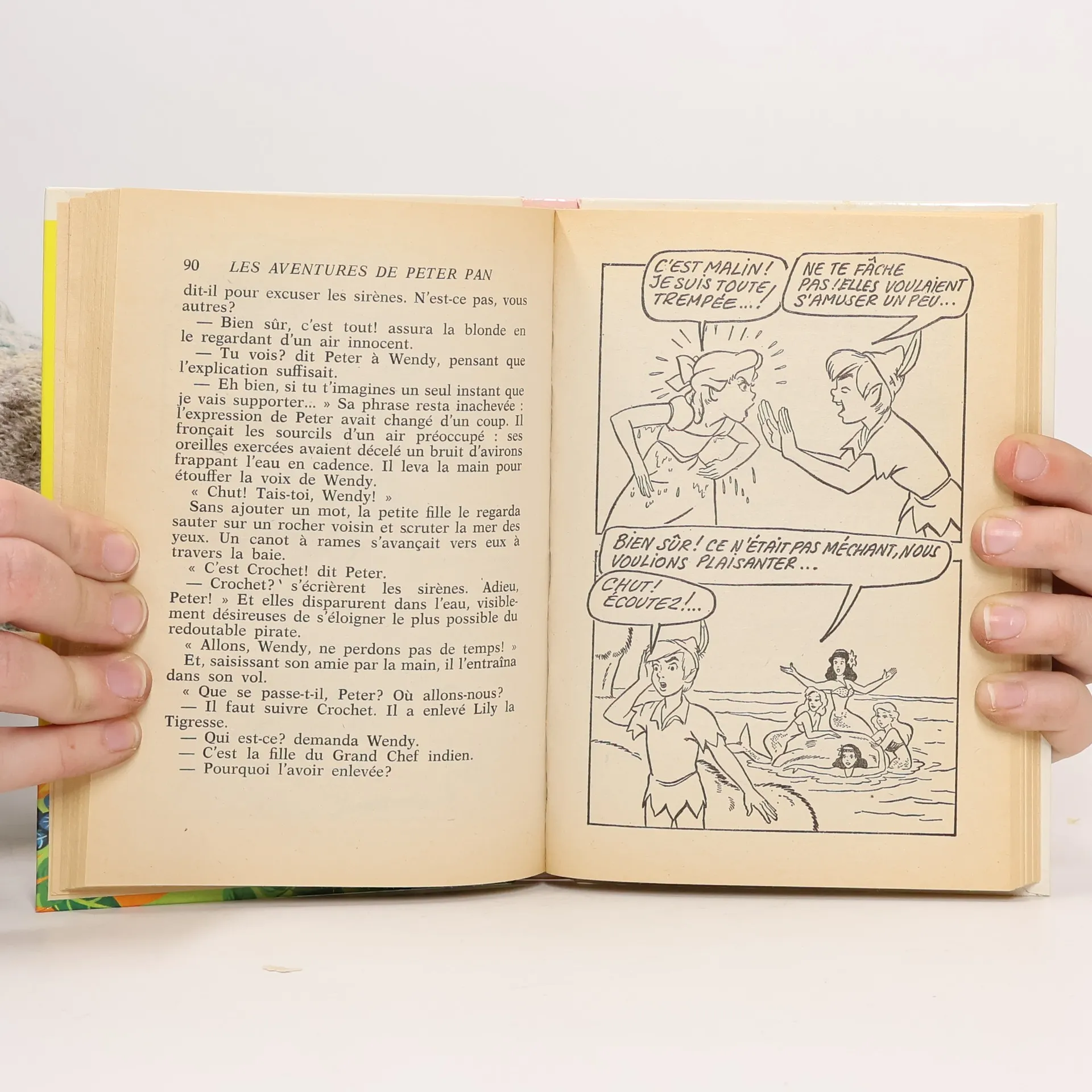 Les Aventures de Peter Panpar Walt DisneyUn crocodile qui fait tic-tac. . . Un navire de pirates commandé par le terrible capitaine Crochet. . . Des Indiens emplumés qui dansent autour de feu de camp en brandissant leurs tomahawks. . . De jolies sirènes aux voix mélodieuses. . .Voilà ce qu'on recontre dans le merveilleux pays où Peter Pan et la fée Clochette entraînent leurs camarades éblouis. . . Et là, que d'aventures! C'est palpitant! Captivant et divertissant comme le dessin animé de Walt Disney!