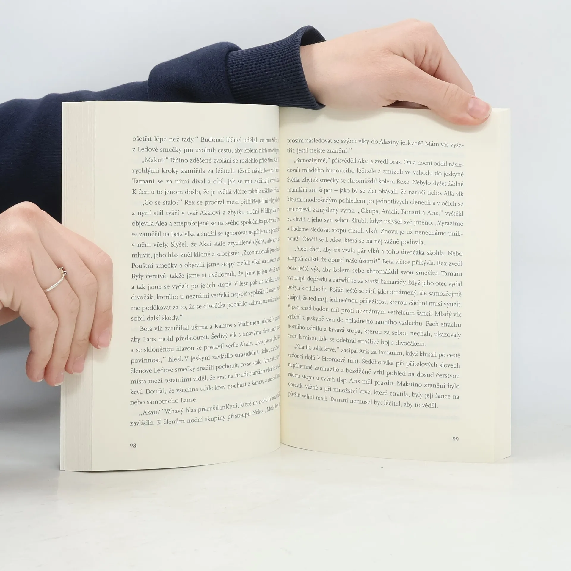 Tamani se vrací ze Strážných hor do Ledového pohoří, kde se musí přizpůsobit novým pravidlům a zákonům. Dozvídá se, že kontakt se členy cizí smečky je přísně zakázán – ale co Shira, láska jeho života? Když se v lesích náhle objeví zlověstné postavy a na vlčí smečky padne temný stín, Tamani si uvědomí, že svět, jak ho on a jeho přátelé znají, je v ohrožení. Mohl by se klíč k jejich záchraně skrývat v tajemném proroctví? Druhý díl strhujícího vlčího příběhu.