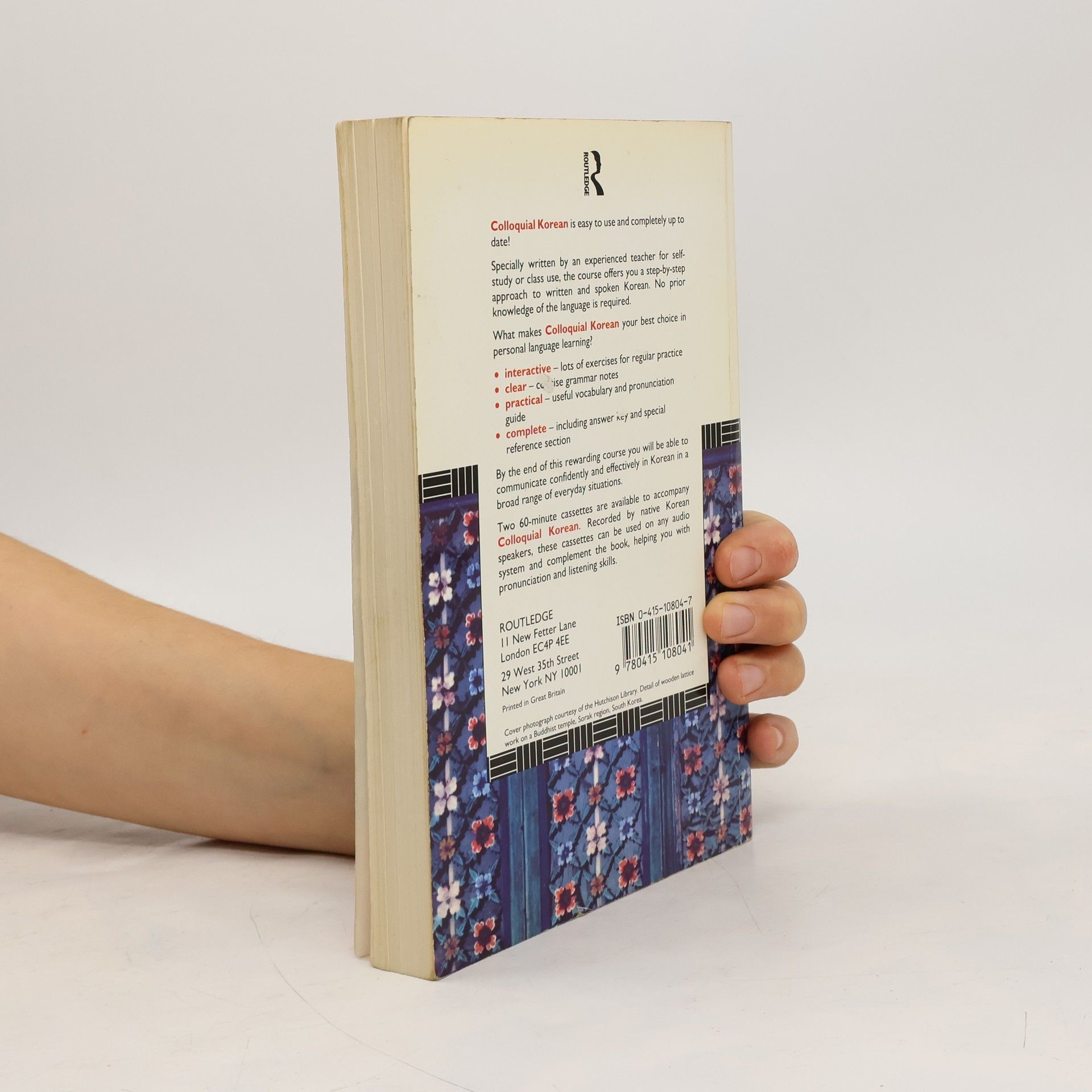 Colloquial Korean is easy to use and completely up-to-date! Specially written by an experience teacher for self-study or class use, the course offers you a step-by-step approach to written and spoken Korean. No prior knowledge of the language is required. What makes Colloquial Korean your best choice in personal language learning? By the end of this rewarding course you will be able to communicate confidently and effectively in Korean in a broad range of everyday situations. Two 60-minute CDs are available to complement the book. Recorded by native speakers, this material will help develop your listening and pronunciation skills.