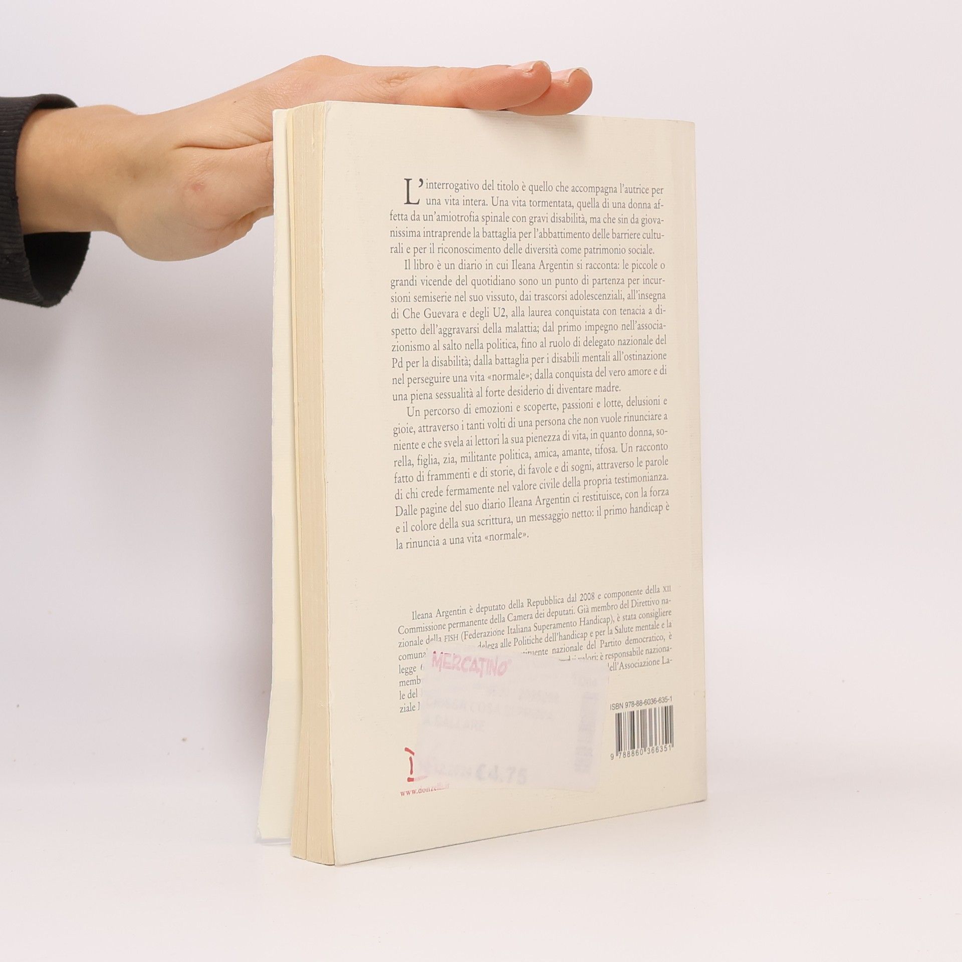 L'interrogativo del titolo è quello che accompagna l'autrice per i una vita intera. Una vita tormentata, quella di una donna affetta da un'amiotrofia spinale con gravi disabilità, ma che sin da giovanissima intraprende la battaglia per l'abbattimento delle barriere culturali e per il riconoscimento delle diversità come patrimonio sociale. Il libro è un diario in cui Ileana Argentin si racconta: le piccole o grandi vicende del quotidiano sono un punto di partenza per incursioni semiserie nel suo vissuto, dai trascorsi adolescenziali, all'insegna di Che Guevara e degli U2, alla laurea conquistata con tenacia a dispetto dell'aggravarsi della malattia; dal primo impegno nell'associazionismo al salto nella politica, fino al ruolo di delegato nazionale del Pd per la disabilità; dalla battaglia per i disabili mentali all'ostinazione nel perseguire una vita "normale"; dalla conquista del vero amore e di una piena sessualità al forte desiderio di diventare madre. Un percorso di emozioni e scoperte, passioni e lotte, delusioni e gioie, attraverso i tanti volti di una persona che non vuole rinunciare a niente e che svela ai lettori la sua pienezza di vita, in quanto donna, sorella, figlia, zia, militante politica, amica, amante, tifosa. Un racconto fatto di frammenti e di storie, di favole e di sogni, attraverso le parole di chi crede fermamente nel valore civile della propria testimonianza.
