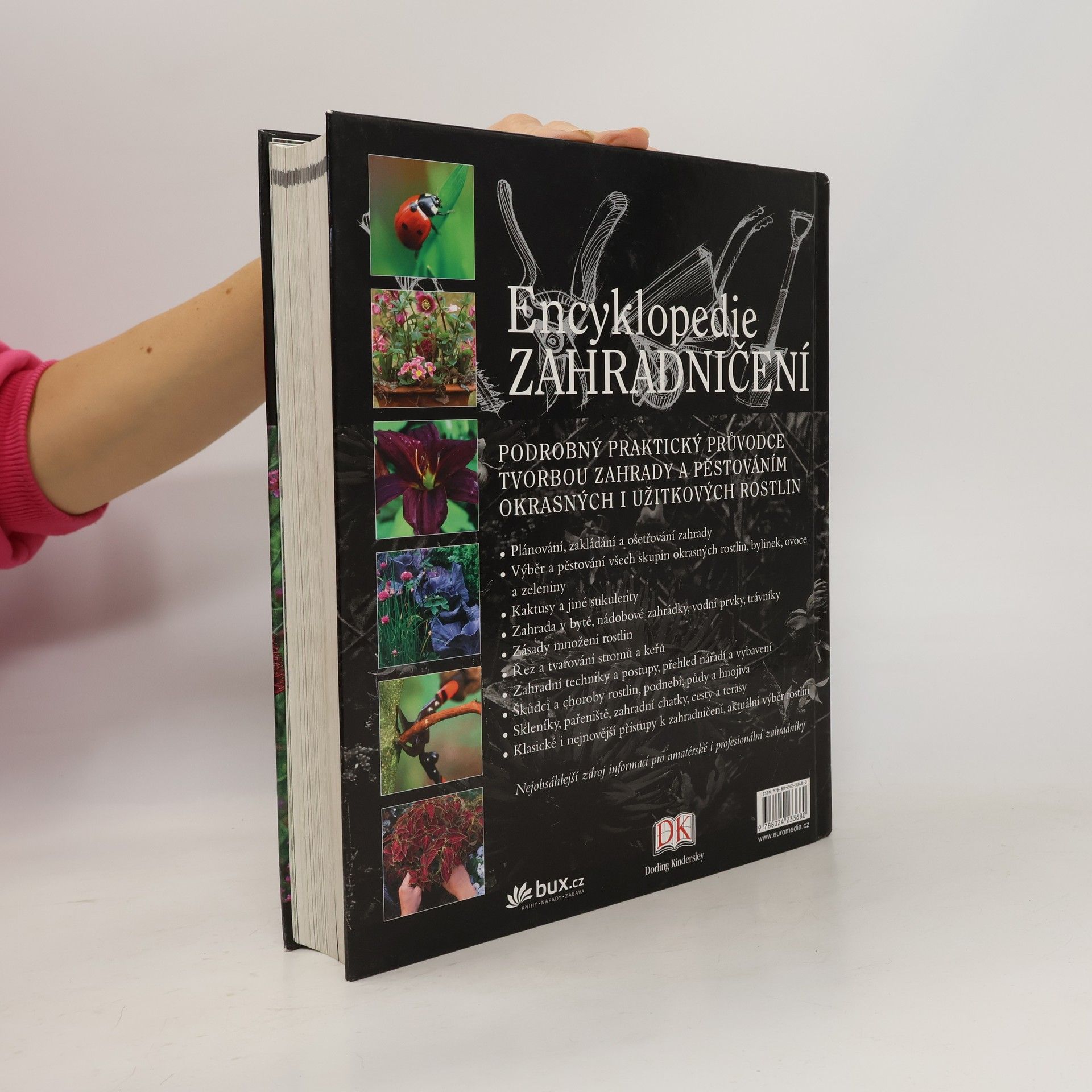 Podrobný praktický průvodce tvorbou zahrady a pěstováním okrasných i užitkových rostlin, nejobsáhlejší zdroj informací pro amatérské i profesionální zahradníky. Plánování, zakládání a ošetřování zahrady. Výběr a pěstování všech skupin okrasných rostlin, bylinek, ovoce a zeleniny. Kaktusy a jiné sukulenty. Zahrada v bytě, nádobové zahrádky, vodní prvky, trávníky. Zásady množení rostlin. Řez a tvarování stromů a keřů. Zahradní techniky a postupy, přehled nářadí a vybavení. Škůdci a choroby rostlin, podnebí, půdy a hnojiva. Skleníky, pařeniště, zahradní chatky, cesty a terasy. Klasické i nejnovější přístupy k zahradničení, aktuální výběr rostlin.