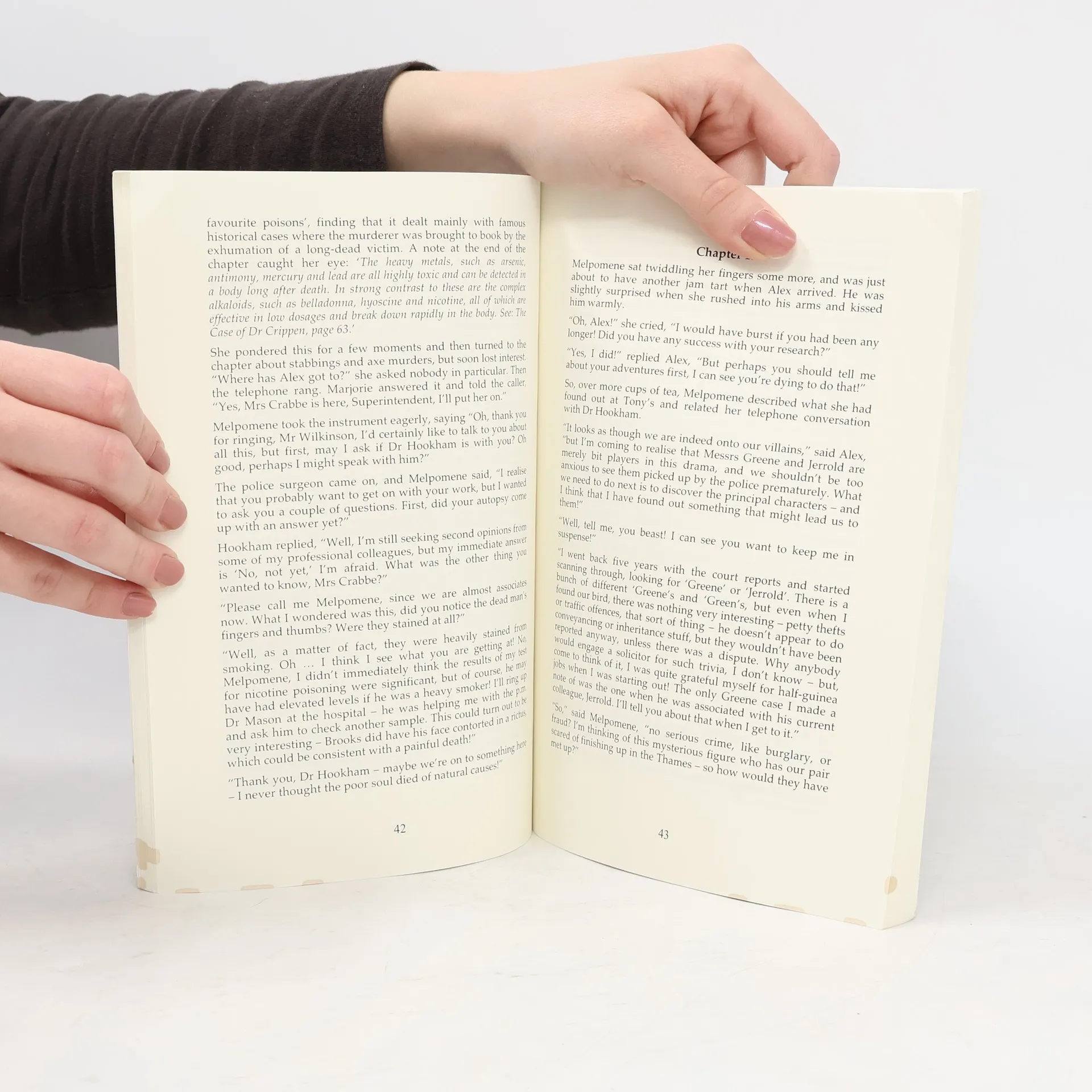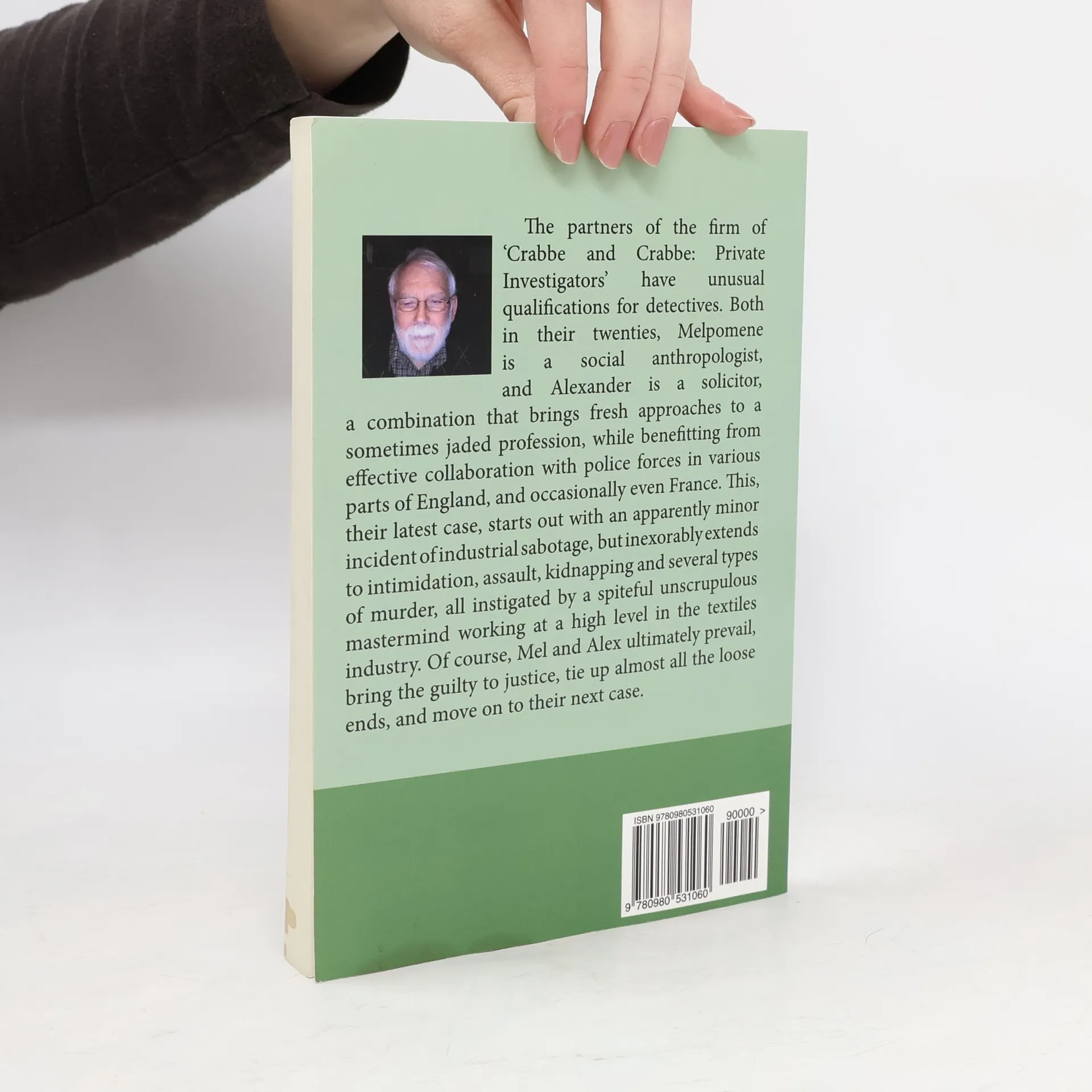 The partners of the firm of 'Crabbe and Crabbe: Private Investigators' have unusual qualifications for detectives. Both in their twenties, Melpomene is a social anthropologist, and Alexander is a solicitor, a combination that brings fresh approaches to a sometimes jaded profession, while benefitting from effective collaboration with police forces in various parts of England, and occasionally even France. This, their latest case, starts out with an apparently minor incident of industrial sabotage, but inexorably extends to intimidation, assault, kidnapping and several types of murder, all instigated by a spiteful unscrupulous mastermind working at a high level in the textiles industry. Of course, Mel and Alex ultimately prevail, bring the guilty to justice, tie up almost all the loose ends, and move on to their next case.