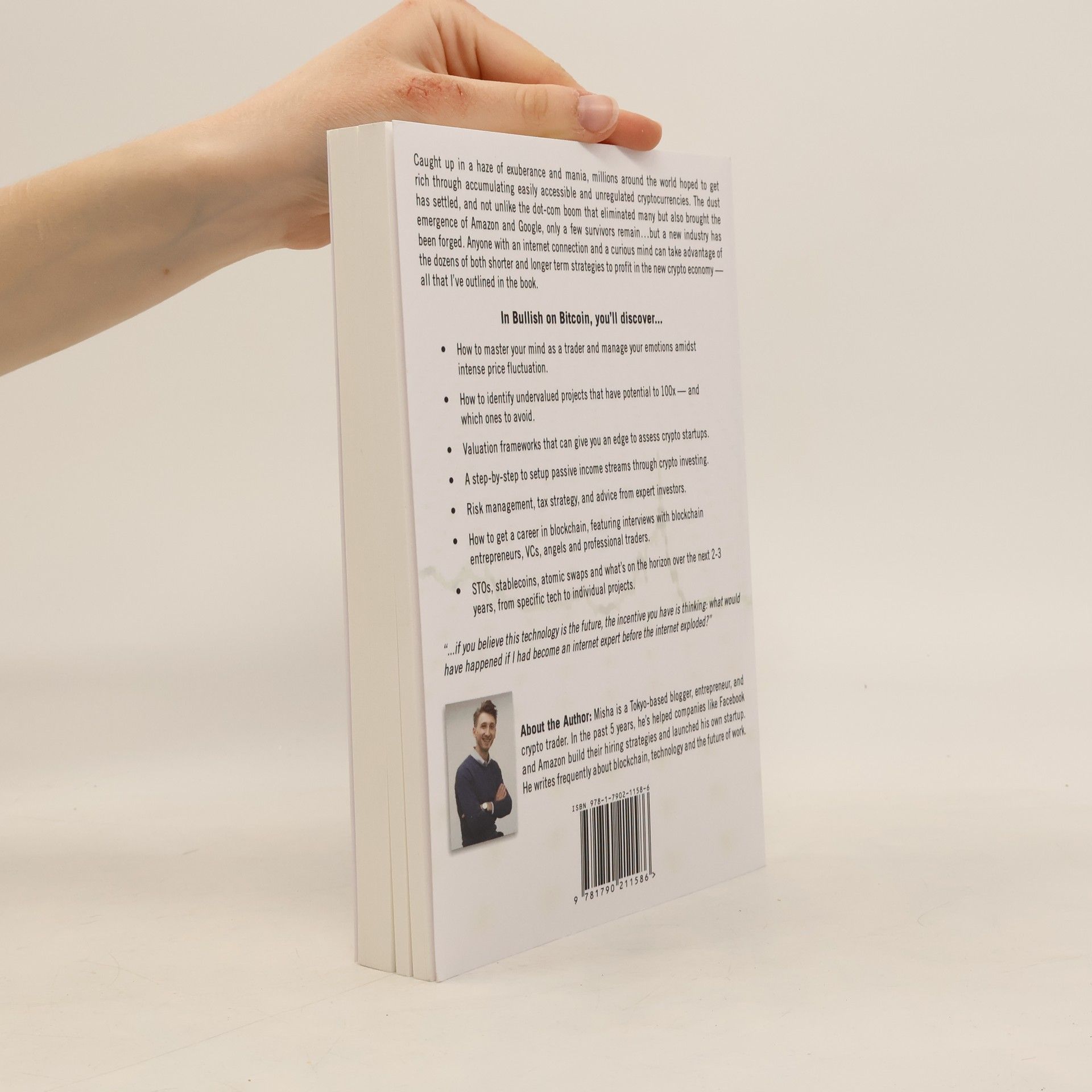 The world was caught up in a haze of exuberance and mania, with many hoping to get rich through accumulating easily accessible and unregulated cryptocurrencies. The dust has settled, and not unlike the dot-com boom that eliminated many but also brought the emergence of Amazon and Google, only a few survivors remain...but a new industry has been forged. Anyone with an internet connection and a curious mind can take advantage of the dozens of both shorter and longer term strategies to profit in the new crypto economy - all that I've outlined in the book. In Bullish on Bitcoin, you'll discover... How to master your mind as a trader and manage your emotions amidst intense price fluctuation. How to identify undervalued projects that have potential to 100x - and which ones to avoid. Valuation frameworks that can give you an edge to assess crypto startups. A step-by-step to setup passive income streams through crypto investing. Risk management, tax strategy, and advice from expert investors. How to get a career in blockchain, featuring interviews with blockchain entrepreneurs, VCs, angels and professional traders. STOs, stablecoins, atomic swaps and what's on the horizon over the next 2-3 years, from specific tech to individual projects. What Readers Are Saying "Whether you are entering the space for the first time or you're a seasoned crypto-nerd with battle scars from multiple bear markets, Misha's book offers invaluable resources and advice on how to keep your cool as well as your shirt in this rapidly evolving market. Having survived the inevitable first-year pitfalls of hype and emotionally-driven speculation, he's emerged as a veteran with the calm disposition of a Zen master and the wisdom of seasoned trader and investor. This book takes you through his journey and compiles a comprehensive guide to staying informed, avoiding the traps and planning your strategy to win, not only for the next bull run but, for the years to come in the inevitable crypto asset revolution." - Mark Mindlin, Data Guru "The book is accessible to those who know little about the world of cryptocurrency (myself included) - yet the work is filled with wisdom pertaining to principles which can (and should) be applied not just in the world of economics, but in life more generally. This text is engaging and relevant, grounded in solid psychological and neuroscientific research and principles. Highly recommended." - Daniel Sher, Clinical Psychologist About the Author Misha is a Tokyo-based ex-recruiter, author and blogger. In the past 5 years, he's helped companies like Facebook and Amazon build their hiring strategies, learned Japanese and is traveling the world. He is the author of five books and writes frequently about cryptocurrencies, technology and the future of work.