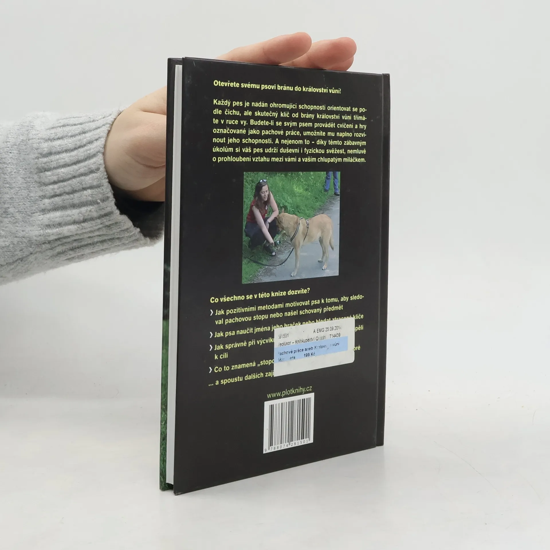 Každý pes je nadán ohromující schopností orientovat se podle čichu, ale skutečný klíč od brány království vůní třímáte v ruce vy. Budete-li se svým psem provádět cvičení a hry označované jako pachové práce, umožníte mu naplno rozvinout jeho schopnosti. A nejenom to – díky těmto zábavným úkolům si váš pes udrží duševní i fyzickou svěžest, nemluvě o prohloubení vztahu mezi vámi a vaším chlupatým miláčkem.