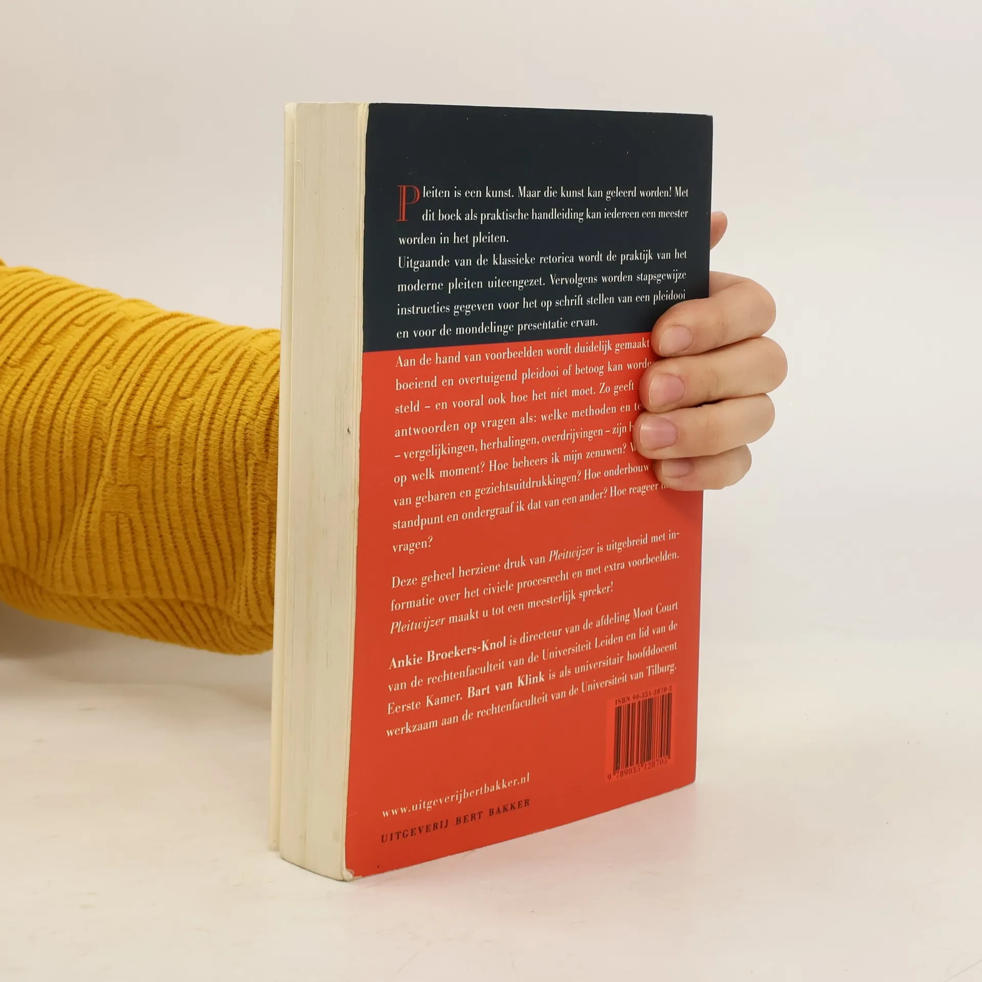 Pleiten is een kunst. Maar die kunst kan geleerd worden! Met dit boek als praktische handleiding kan iedereen een meester worden in het pleiten. Uitgaande van de klassieke retorica wordt de praktijk van het moderne pleiten uiteengezet. Vervolgens worden stapsgewijze instructies gegeven voor het op schrift stellen van een pleidooi en voor de mondelinge presentatie ervan. Aan de hand van voorbeelden wordt duidelijk gemaakt hoe een boeiend en overtuigend pleidooi of betoog kan worden opgesteld _ en vooral ook hoe het n’et moet. Zo geeft Pleitwijzer antwoorden op vragen welke methoden en technieken _ vergelijkingen, herhalingen, overdrijvingen _ zijn het effectiefst op welk moment? Hoe beheers ik mijn zenuwen? Wat is de rol van gebaren en gezichtsuitdrukkingen? Hoe onderbouw ik mijn standpunt en ondergraaf ik dat van een ander? Hoe reageer ik op vragen? Deze geheel herziene druk van Pleitwijzer is uitgebreid met informatie over het civiele procesrecht en met extra voorbeelden. Pleitwijzer maakt u tot een meesterlijk spreker! Ankie Broekers-Knol is directeur van de afdeling Moot Court van de rechtenfaculteit van de Universiteit Leiden en lid van de Eerste Kamer. Bart van Klink is als universitair hoofddocent werkzaam aan de rechtenfaculteit van de Universiteit van Tilburg.