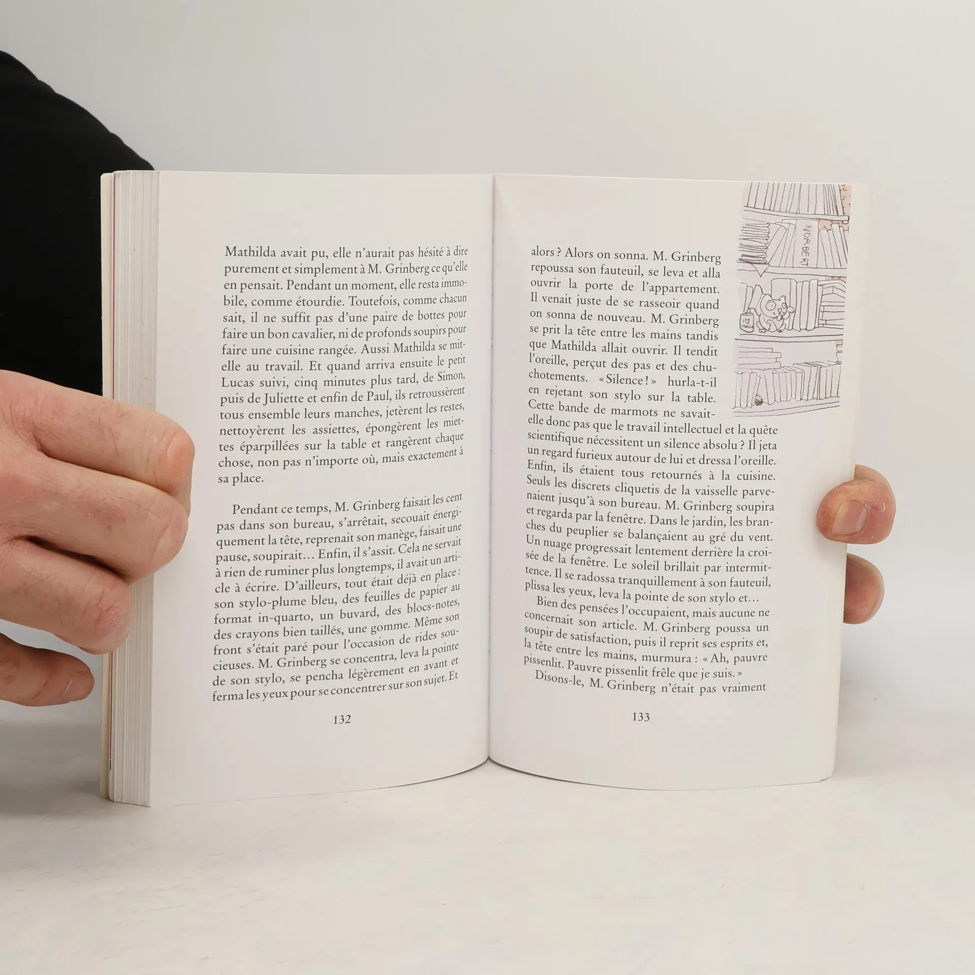 Si ça ne tenait qu’à lui, M. Grinberg garderait toute la journée le nez fourré dans ses notes et ses journaux. Le monde l’intéresse, certes, mais pas forcément celui qui l’entoure. Un soir pourtant, à l’occasion de sa promenade quotidienne avec son chien, il découvre sur un banc son petit voisin, épuisé et gelé. En le reconduisant chez ses parents, il apprend la raison qui a amené l’enfant à fuguer : sa grand-mère adorée lui a annoncé qu’elle allait mourir.Comment aider un enfant plongé dans le chagrin ? De nombreux personnages vont s’y essayer avec plus ou moins de succès. Mathilda, une Mademoiselle Je-sais-tout, est persuadée de détenir la solution : après tout, pourquoi le vieux grincheux ne remplacerait-il pas la grand-mère de son ami ?M. Grinberg, quant à lui, se souvient d’un livre mystérieux qui a circulé dans son enfance, Le Livre des questions . Voilà, pense-t-il, qui devrait guider le garçon, comme tant d’enfants en difficulté avant lui. Mais comment récupérer ce livre ? Il y songe et découvre accessoirement qu’il est tombé amoureux. Ce roman philosophique, hommage désordonné aux Lumières truffé d’anecdotes, de notes, de maximes, de dogmes et de leurs contraires, a pour sujets le bonheur, les oreilles décollées, un livre mystérieux, l’éducation des chiens, la gourmandise, les énigmes, les règles du poker, les étrangers, la force de l’amitié et ce qu’on appelle, à tort ou à raison, la « magie de l’amour ».