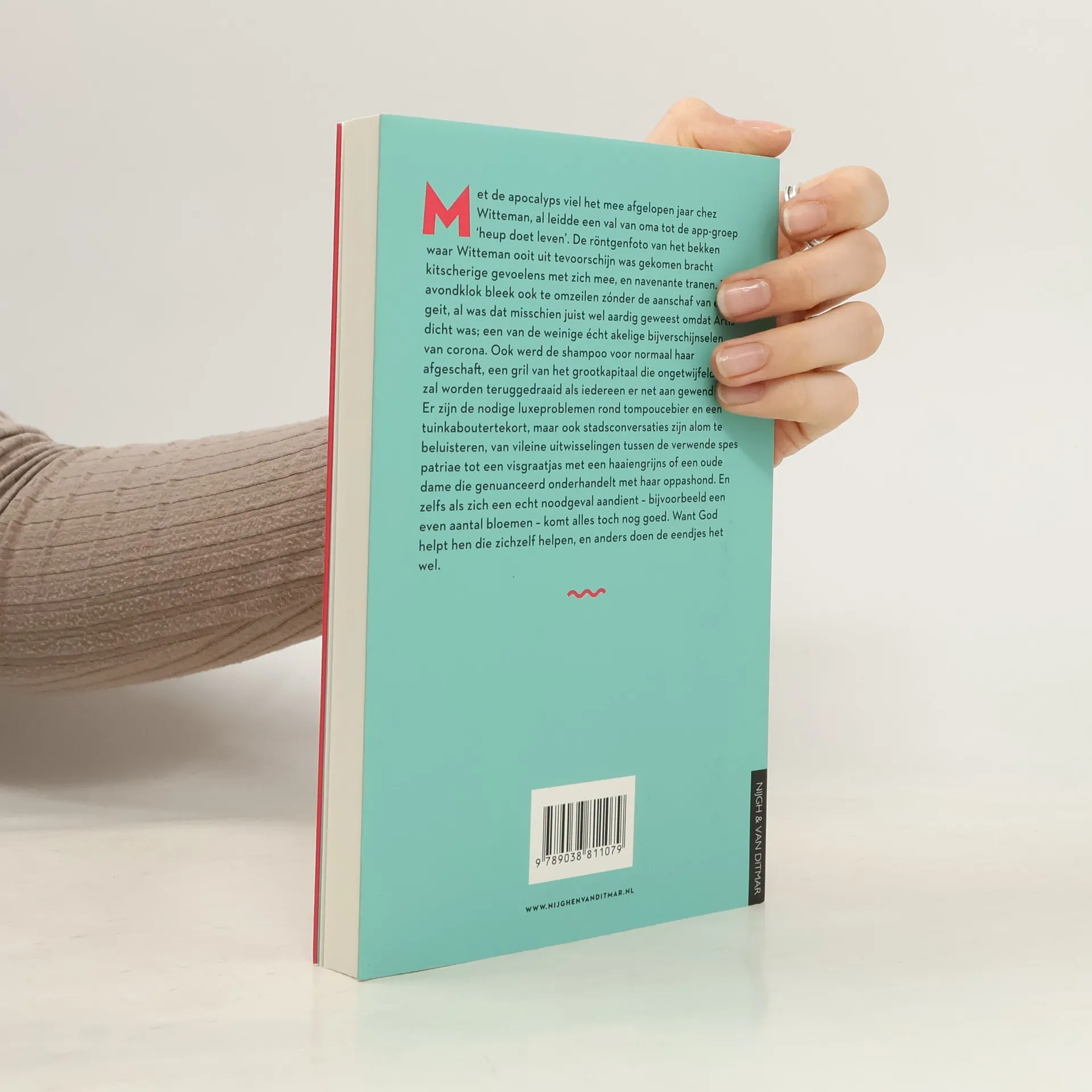 Met de apocalyps viel het mee afgelopen jaar chez Witteman, al leidde een val van oma tot de app-groep ‘heup doet leven’. De röntgenfoto van het bekken waar Witteman ooit uit tevoorschijn was gekomen bracht kitscherige gevoelens met zich, en navenante tranen. De avondklok bleek ook te omzeilen zónder de aanschaf van een geit, al was dat misschien juist wel aardig geweest omdat Artis dicht was; een van de weinige écht akelige bijverschijnselen van corona. Ook werd de shampoo voor normaal haar afgeschaft, een gril van het grootkapitaal die ongetwijfeld zal worden teruggedraaid als iedereen er net aan gewend is. Er zijn de nodige luxeproblemen rond tompoucebier en een tuinkaboutertekort, maar ook stadsconversaties zijn alom te beluisteren, van vileine uitwisselingen tussen de verwende spes patriae tot een visgraatjas met een haaiengrijns of een oude dame die genuanceerd onderhandelt met haar oppashond. En zelfs als zich een echt noodgeval aandient – bijvoorbeeld een even aantal bloemen – komt alles toch nog goed. Want God helpt hen die zichzelf helpen, en anders doen de eendjes het wel.