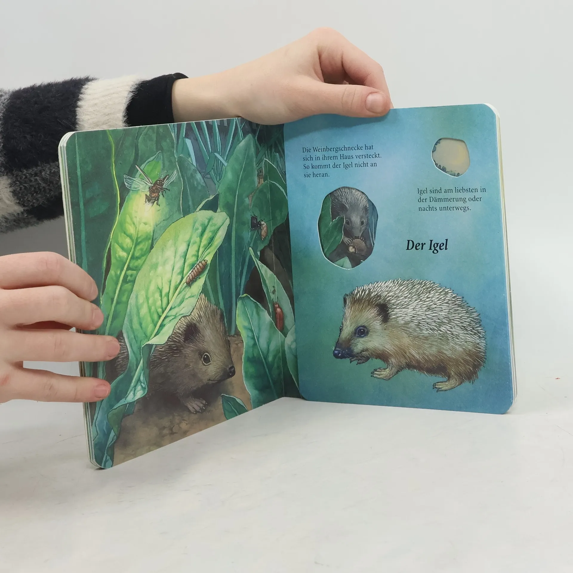 Auf zur Entdeckungsreise durch die Tierwelt! Welche Tiere kann man im Garten finden? Wie leben Maulwürfe und Schmetterlinge, wie sehen ihre Jungen aus und was fressen sie am liebsten? Jede Doppelseite kann zu einem großen Panoramabild aufgeklappt werden, auf dem die Kinder alles über ihre Lieblingstiere erfahren. Wenn sie die Seite wieder zuklappen, entdecken sie in den Gucklöchern spannende Details: die Nester, die Jungen und die Leckerbissen der Tiere. Erstes Sachwissen für kleine Kinder. Mit Ausklappseiten und Gucklöchern und wunderschönen detailgetreuen Bildern.